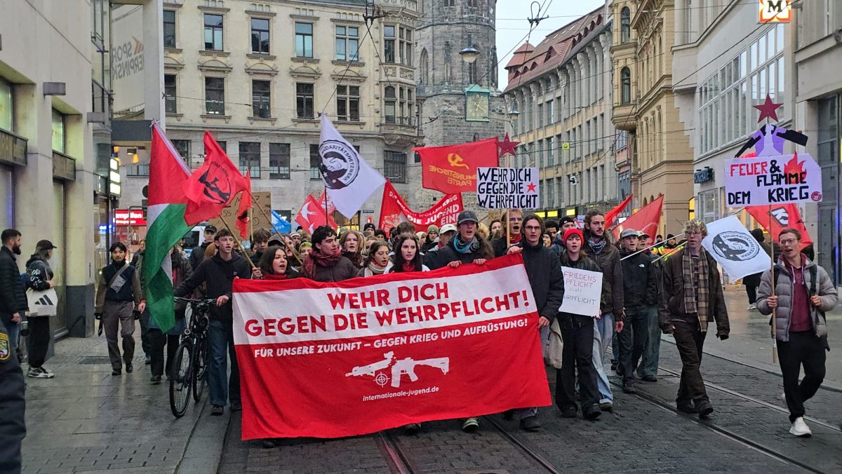Wenn man schon die Flaggen sieht… Was soll eine Palästina-Flagge bei solch einer Demo? Und dann due linken Parolen. Haben sich die Teulnehmer mal überlegt, wer ihre Ausbildung und das Studium bezahlt? Ein Pflichtjahr, egal ob Bundeswehr oder in zivilen sozialen Einrichtungen würde diesen Schreihälsen guttun. Wir wurden damals auch nicht gefragt, ob wir Zivilverteidigung absolvieren wollen. Geschadet hat es nicht.