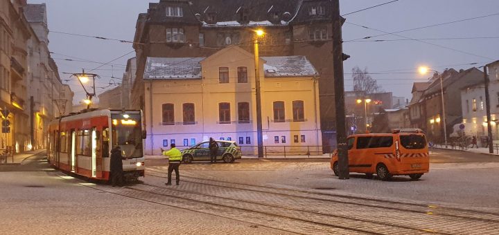 Am frühen Samstagabend gegen 17.20 Uhr ist in der Mansfelder Straße am Sandanger in Halle ein PKW ins Gleisbett der Straßenbahn gefahren. Der Straßenbahnverkehr in Richtung Rennbahnkreuz war bis kurz nach 18 Uhr blockiert.