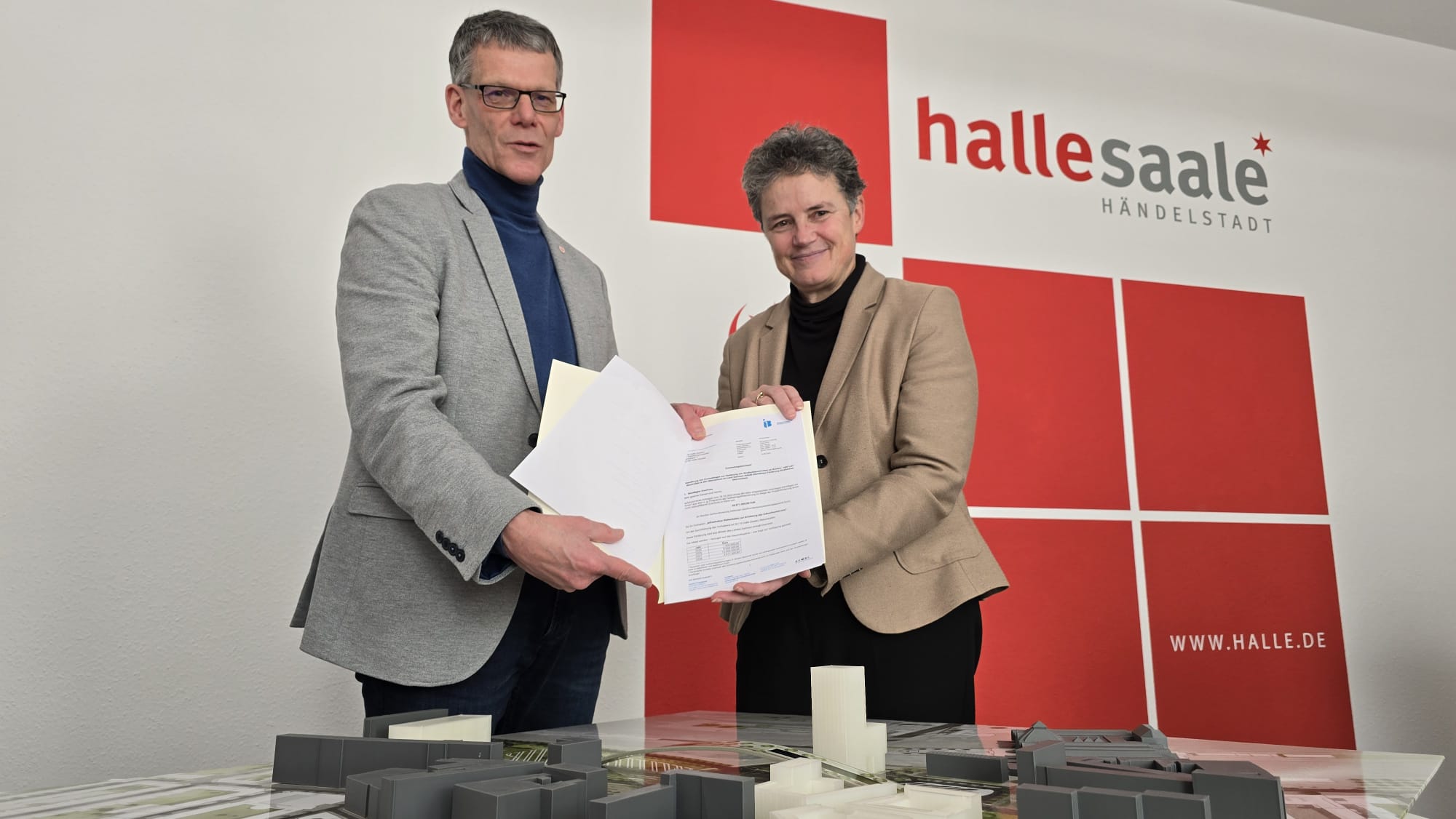 Heute hat Verkehrsministerin Lydia Hüskens einen Fördermittelbescheid über 29 Millionen Euro an die Stadt Halle (Saale) überreicht. Mit dem Geld soll der Riebeckplatz in Vorbereitung des Zukunftszentrums umgebaut werden. Unter anderem wird die Volkmannstraße verlegt. Die Bauarbeiten sollen im zweiten Quartal 2026 beginnen.