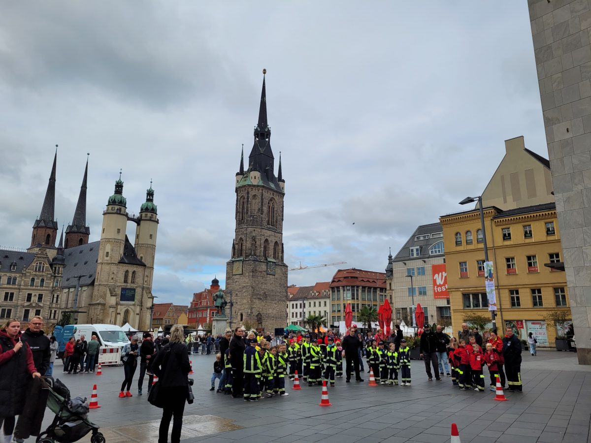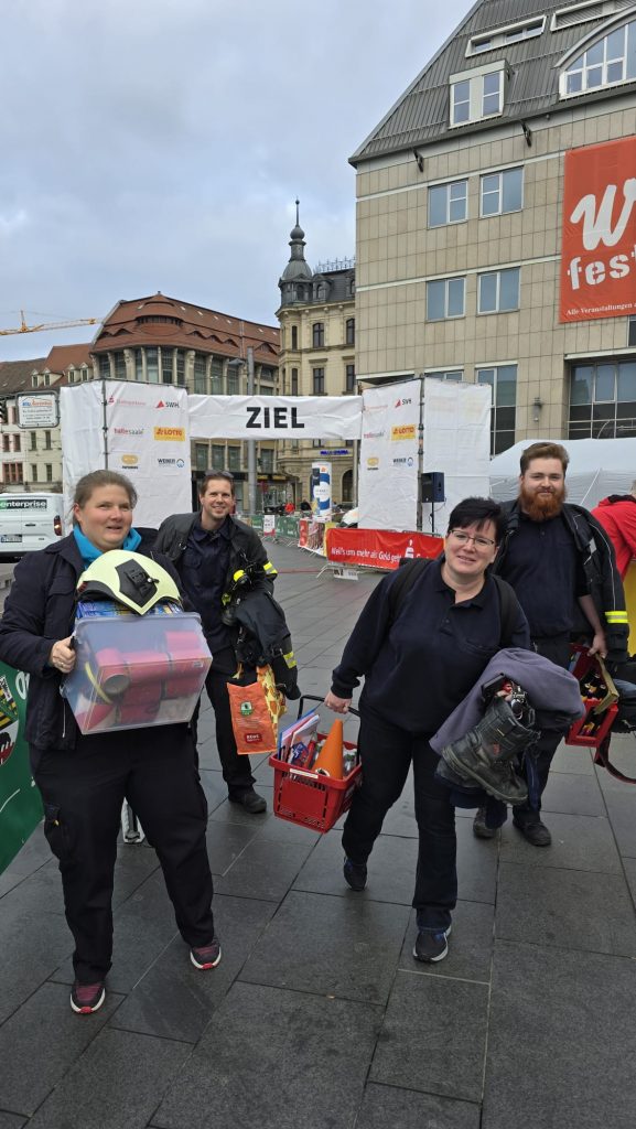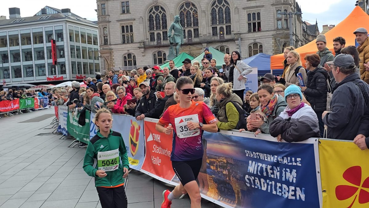 Im sportlichen Zentrum der Veranstaltung stand der Marathonlauf. Bei den Männern war die Entscheidung schnell gefallen: Dr. Cornelius Rossbach, Arzt am Unfallkrankenhaus Berlin und Läufer der Adidas Runners, setzte sich bereits früh im Rennen von seinen Konkurrenten ab. Nach nur zehn Kilometern lag er klar in Führung und baute diesen Vorsprung bis Kilometer 30 weiter aus. Er erreichte das Ziel nach 2:45:07 Stunden als klarer Sieger. Auf Platz zwei folgte Max Widder von OE Teamsport mit einer Zeit von 2:53:51 Stunden. Den dritten Platz sicherte sich Stefan Thiel vom SV Sömmerda in 2:56:27 Stunden. Auch bei den Frauen war das Rennen deutlich: Jennifer Hönicke vom Team „The J-Team“ siegte souverän und kam genau um 12:00 Uhr – begleitet vom Glockenschlag der Marktkirche – nach 3:00:14 Stunden ins Ziel. Hinter ihr folgten Henriette Willing mit 3:16:52 Stunden sowie Susann Suchanke von den Stadtwerken Halle mit einer Zielzeit von 3:26:15. Insgesamt absolvierten 345 Männer und 71 Frauen den Marathon – eine solide Teilnehmerzahl, die zeigt, dass der klassische Straßenlauf trotz wachsender Konkurrenz durch kürzere Distanzen weiterhin eine große Anziehungskraft besitzt.