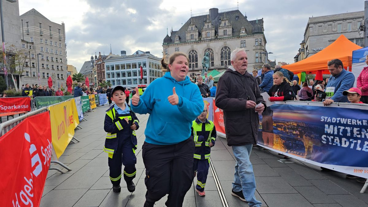 Abseits der reinen Zeiten und Platzierungen prägten auch viele emotionale und symbolträchtige Ereignisse das Bild des Marathons. Besonders berührend war der Zieleinlauf eines Teams mit einem Rollstuhlfahrer, organisiert von Mario Gursky, der unter lautem Beifall um 12:57 Uhr die Ziellinie passierte. Nur Minuten zuvor kam ein blinder Läufer mit seinem Guide ins Ziel – ein sichtbares Zeichen für Inklusion im Sport. Ebenfalls unvergesslich: Ein Teilnehmer machte seiner Freundin direkt nach dem Marathonlauf einen Heiratsantrag. Umringt von Zuschauern, Sportlern und Musik – und sichtlich erschöpft – wagte er den Schritt, der mit einem „Ja“ beantwortet wurde. Auch bekannte Gesichter ließen sich den Mitteldeutschen Marathon nicht entgehen: So absolvierte der ehemalige Polizeisprecher Ralf Karlstedt den Halbmarathon, und der zweifache Marathon-Olympiasieger Waldemar Cierpinski war als Ehrengast vor Ort, um die Siegerinnen und Sieger persönlich zu ehren. Zuvor hatte Cierpinski bereits für einen Fan noch eines seiner Bücher organisiert, der damit seine Frau überraschend will. Natürlich wurde das Buch auch signiert. Der Einsatz von über 500 ehrenamtlichen Helferinnen und Helfern sorgte nicht nur für einen reibungslosen Ablauf, sondern auch für eine warmherzige Atmosphäre entlang der gesamten Strecke.