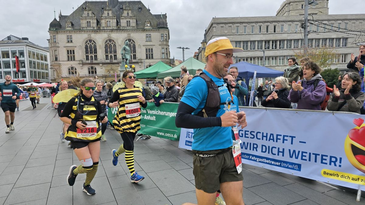 Auch eine Läufergruppe aus Hildesheim war über diese Distanz unterwegs – ein sportliches Zeichen zum 35-jährigen Bestehen der Städtepartnerschaft zwischen Halle und der niedersächsischen Stadt. Die Städte Halle (Saale) und Hildesheim sind seit 1990 freundschaftlich verbunden. Im Rahmen des 35-jährigen Jubiläums dieser Partnerschaft gibt es mehrere kulturelle Veranstaltungen – darunter eine Ausstellung mit Leihgaben aus dem Beatles Museum Halle, die noch bis zum 29. Oktober im Hildesheimer Rathaus zu sehen ist.
