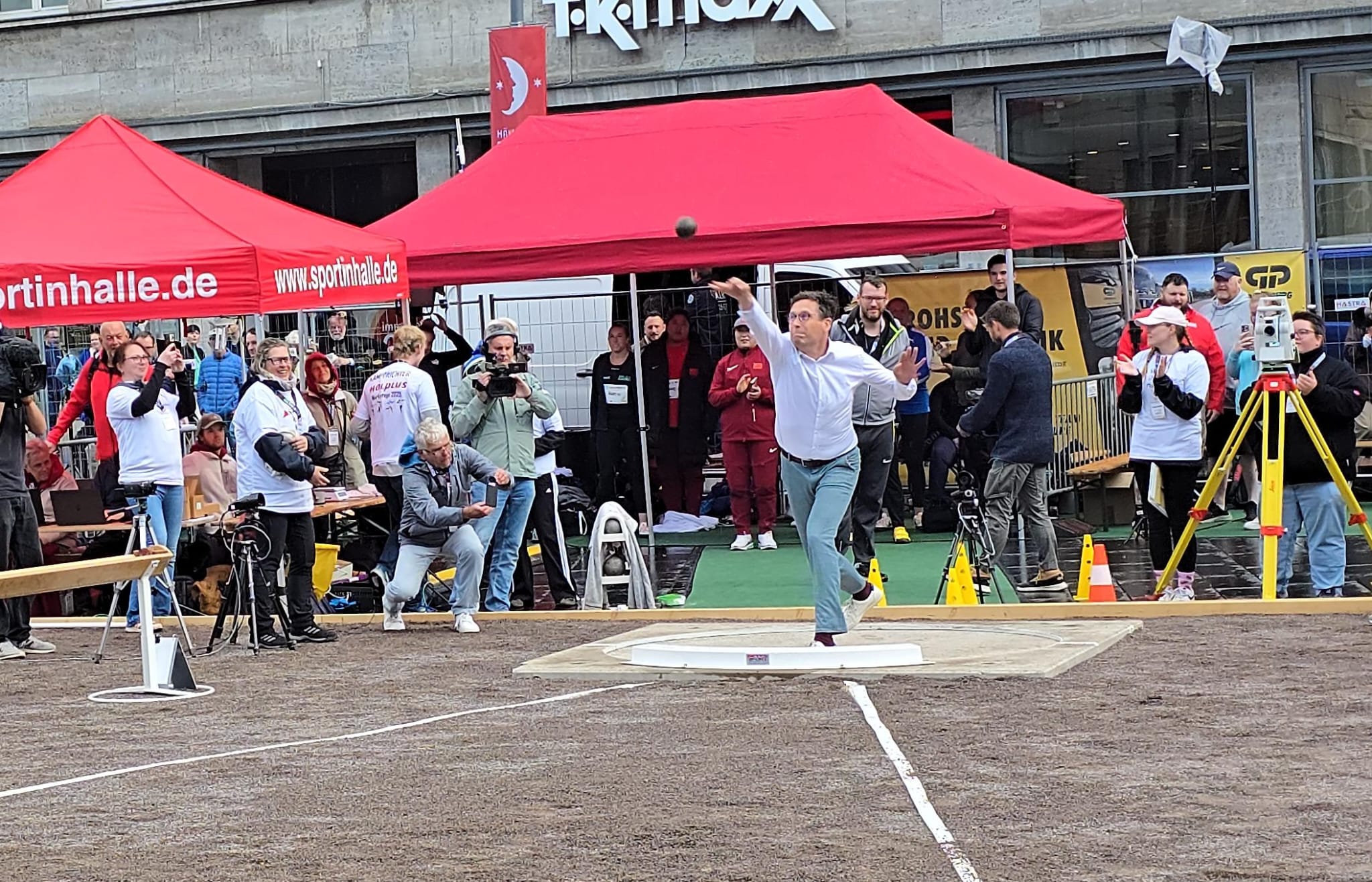 50. Werfertage in Halle: Weltmeister und Olympiasieger beim Kugelstoßen auf dem Marktplatz – OB Vogt hat die erste Kugel gestoßen