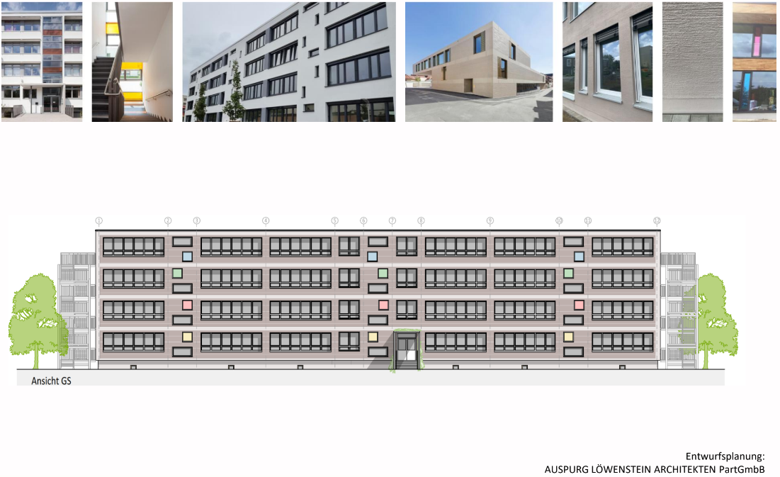 Da sich die Grundschule „Am Kirchteich“ und die „Christian Gotthilf Salzmann“ Förderschule das Gebäude teilen, wurde besonderer Wert auf eine klare Trennung und gleichzeitige Orientierung gelegt. Die Trennung der beiden Schulen erfolgt im Erdgeschoss mittig und versetzt sich in den oberen Etagen leicht, um den unterschiedlichen Flächenbedarfen gerecht zu werden. Ein ausgeklügeltes Farbkonzept, bei dem die Schulen aktiv mitwirken können, wird jeder Etage und jedem Gebäudeteil eine eigene Identität verleihen. So finden sich künftig die jüngsten Schüler der ersten Klassen im Erdgeschoss mit direktem Zugang zum Schulhof wieder, während Fachunterrichtsräume und Verwaltungsbereiche in den beruhigten Zonen des Mitteltraktes und der Obergeschosse angesiedelt sind. Auch die Nutzung als Familienschulzentrum im Rahmen des Startchancen-Programms findet im neuen Raumprogramm volle Berücksichtigung.