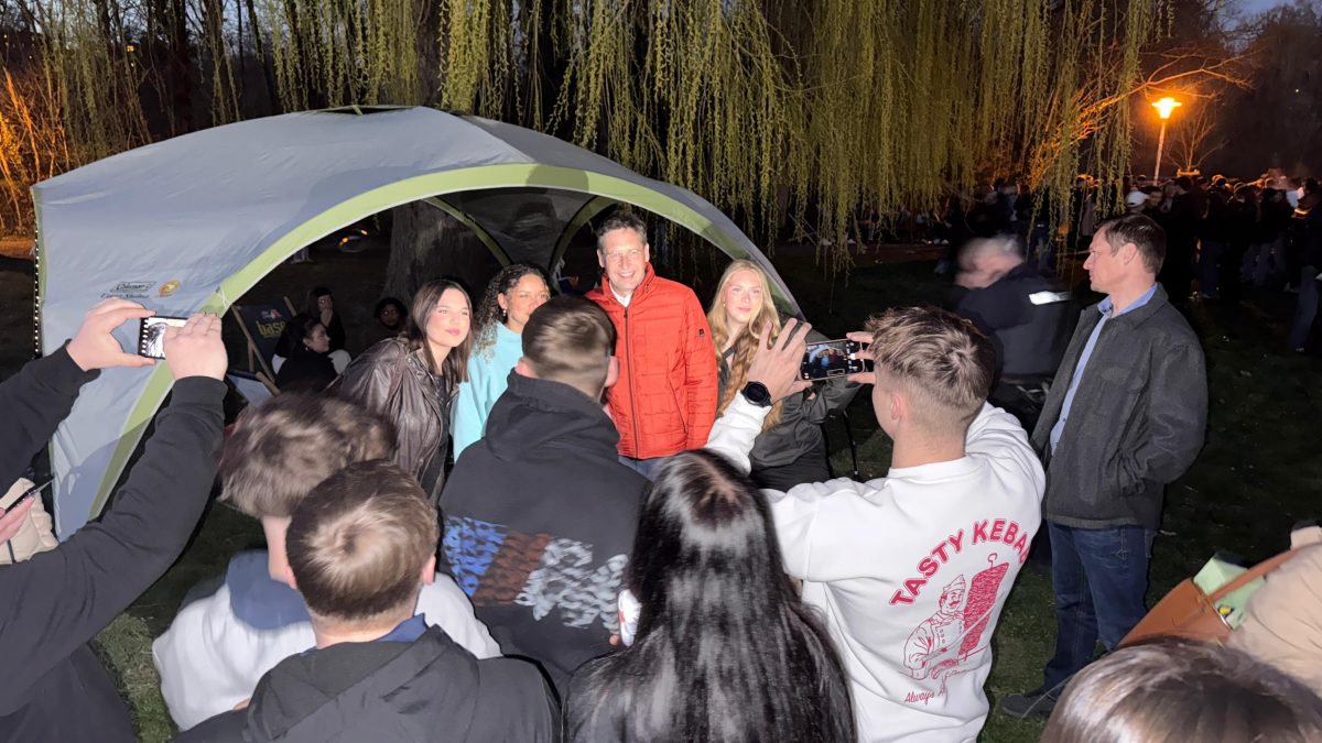 Auch Oberbürgermeister Dr. Alexander Vogt hat zusammen mit Tobias Teschner, Leiter des Fachbereichs Sicherheit, auf der Ziegelwiese vorbeigeschaut. Immer wieder wurde dabei Vogt angesprochen, weil Jugendliche mit ihm Selfies wollten. Gleich der erste Jugendliche rief Vogt zu „Ich habe Sie gewählt“. Und auch einige ehemalige Schüler traf Vogt, der bis vor kurzem selbst Lehrer war.