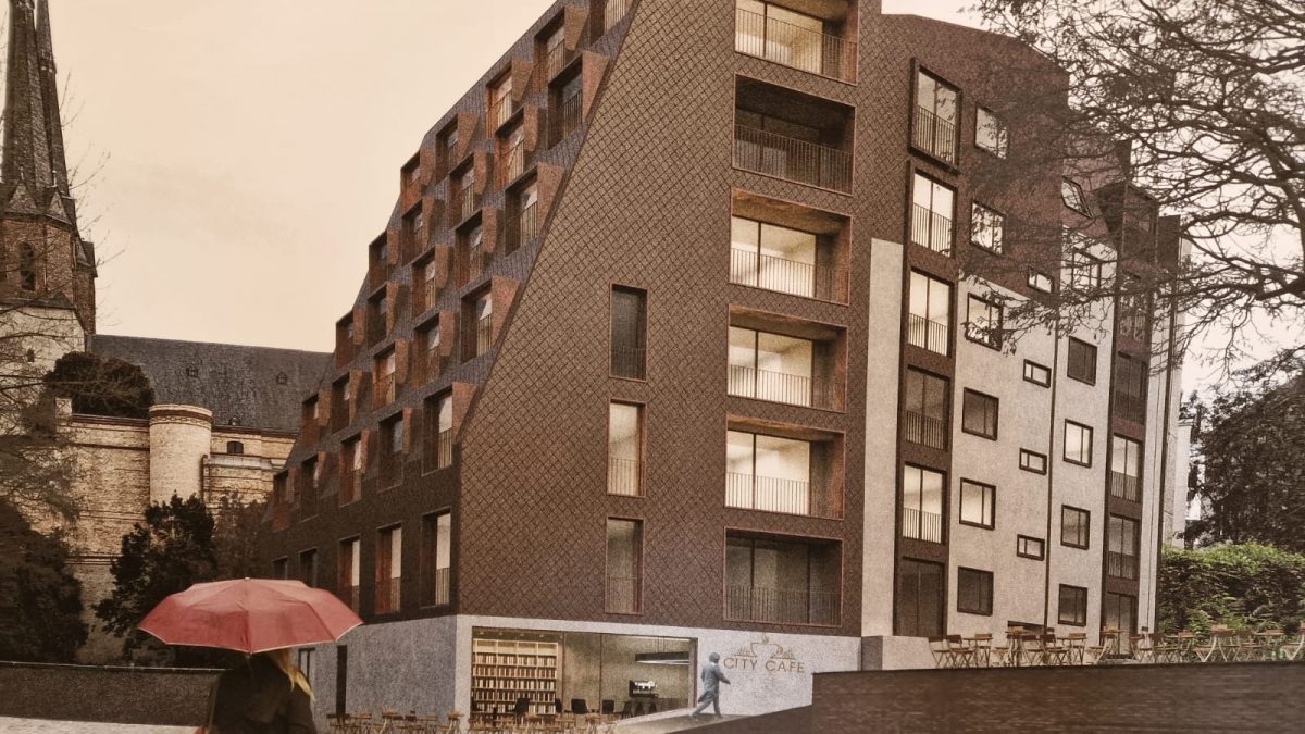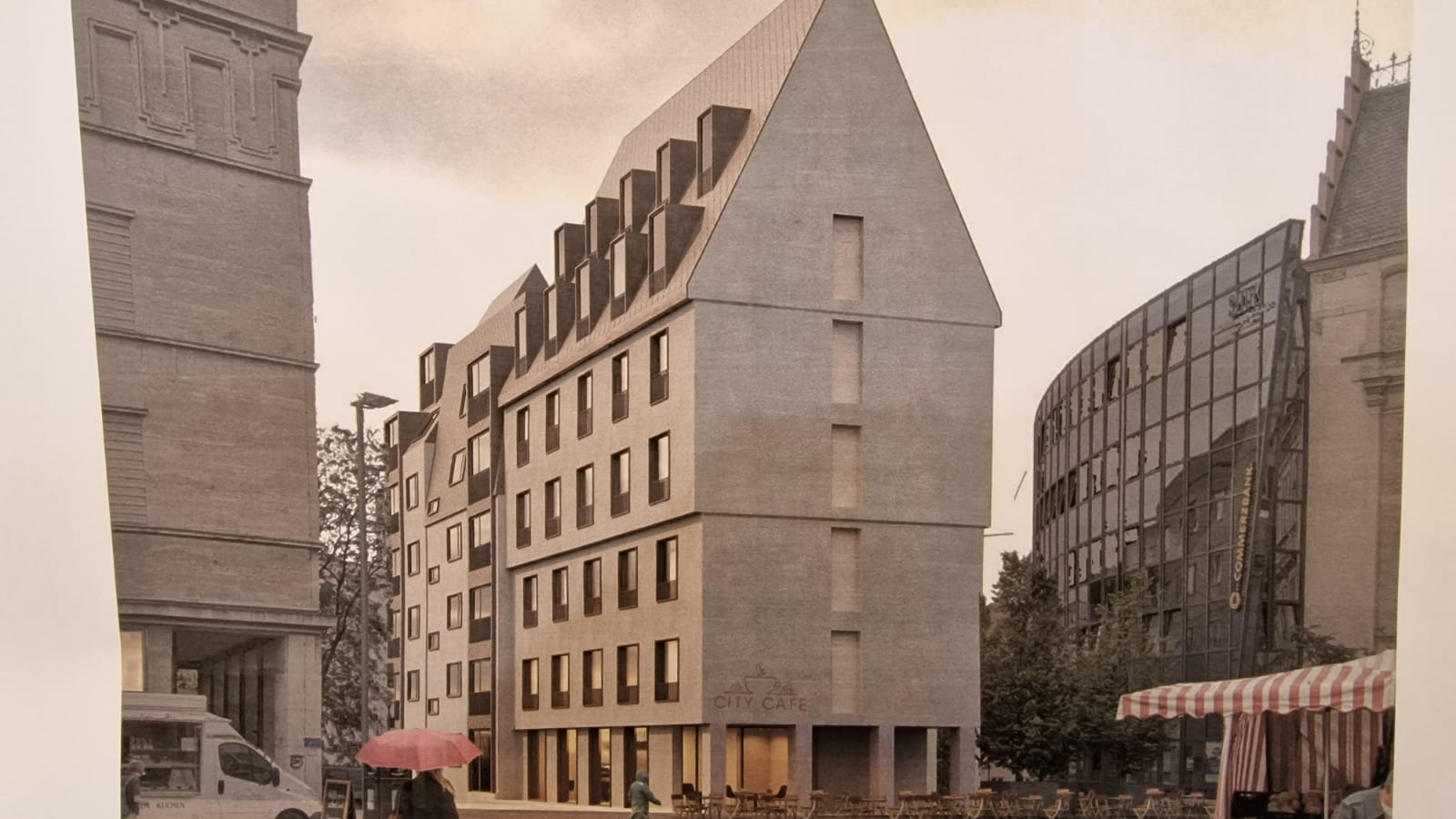 Der von snarq hätte der Architektur gut getan und fügt sich auch besser ins alte Stadtbild ein, aber nein: wir nehmen wieder den einfachen Kasten 🤦‍♀️