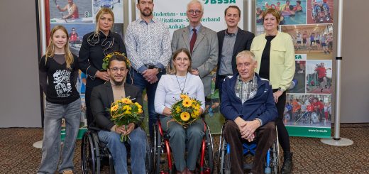 Die Ehrung nahmen der Präsident des BSSA, Dr. Volkmar Stein und der Stellvertretende Ärztlicher Direktor des BG Klinikums Bergmannstrost Halle – Offizieller Förderer des Behinderten- und Rehabilitationssports in Sachsen-Anhalt – Dr. Joachim Zaage vor.