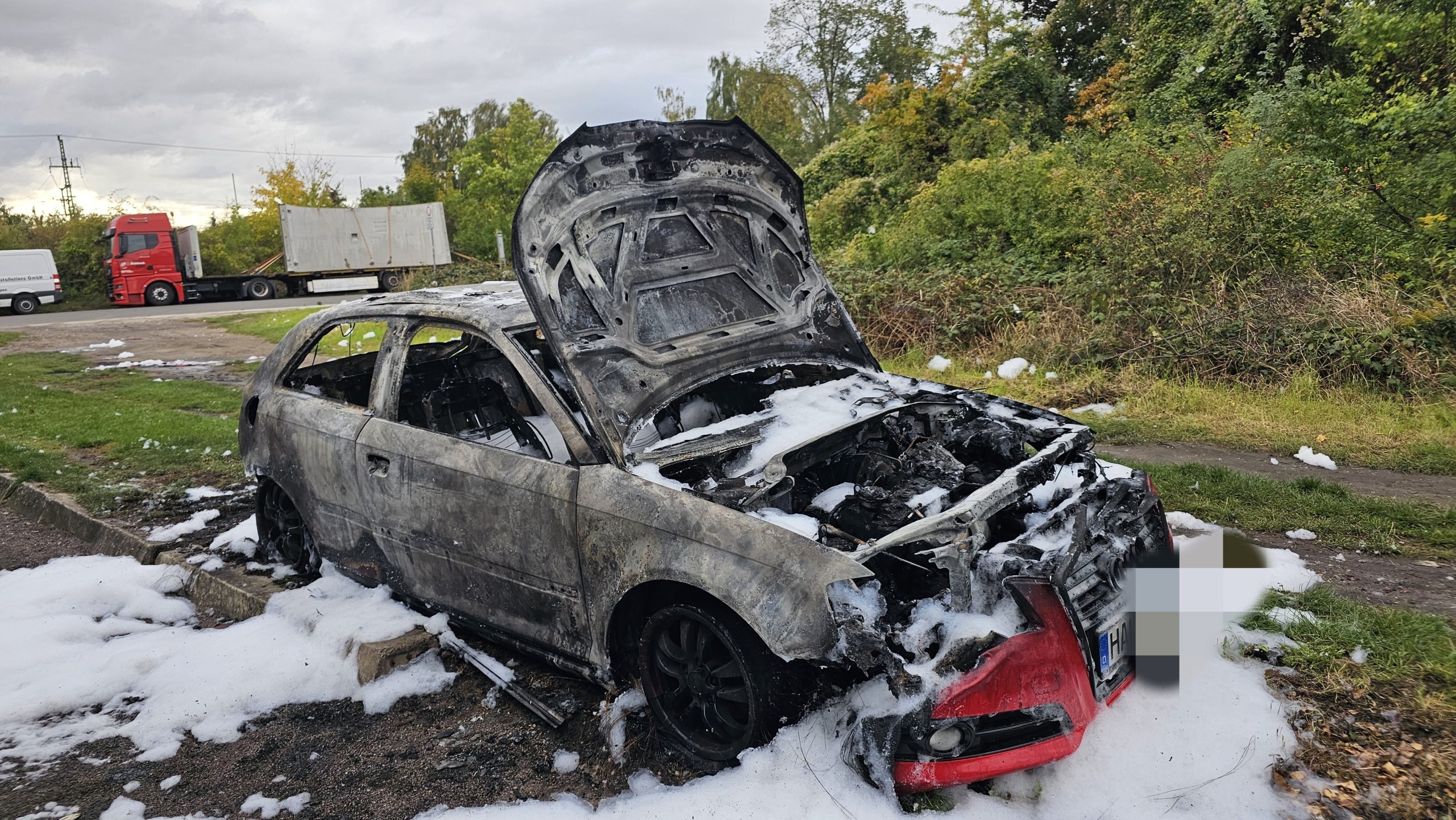 Schon wieder hat in Halle (Saale) ein Auto gebrannt, diesmal auf einem Parkplatz einer Gartenanlage zwischen der Straße Zum Heizkraftwerk und dem alten Thüringer Bahnhof. Der Audi wurde dabei vollständig zerstört. Das Feuer ist gegen 4.30 Uhr ausgebrochen.