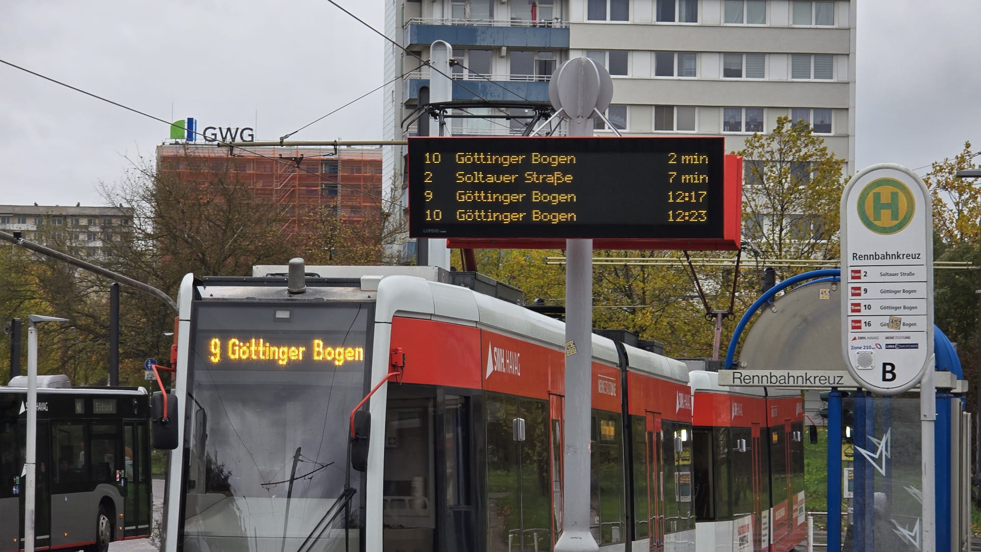 Die ganze Woche über endeten Straßenbahnen zudem am Zentrum Neustadt, weil neben dem Neustadt Centrum eine reguläre Weiche entfernt wurde.