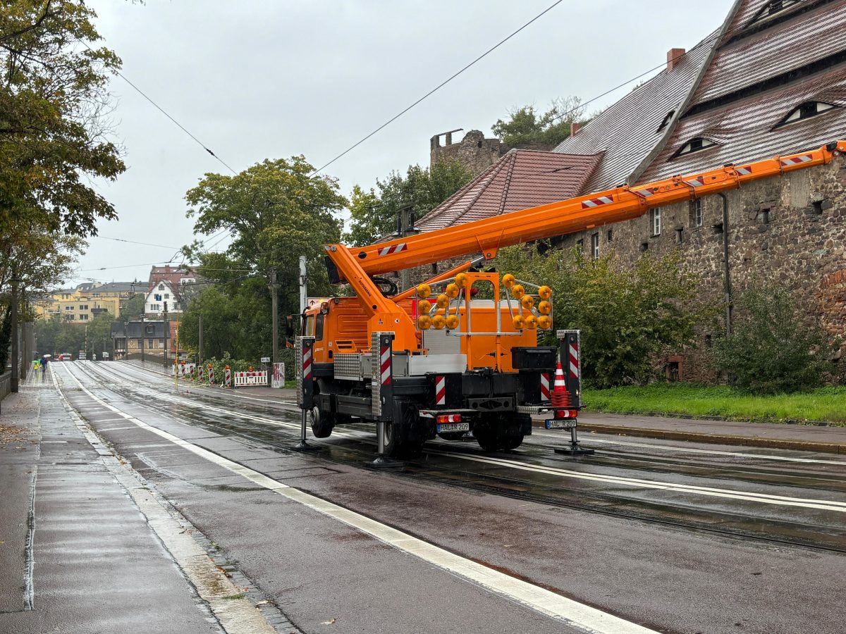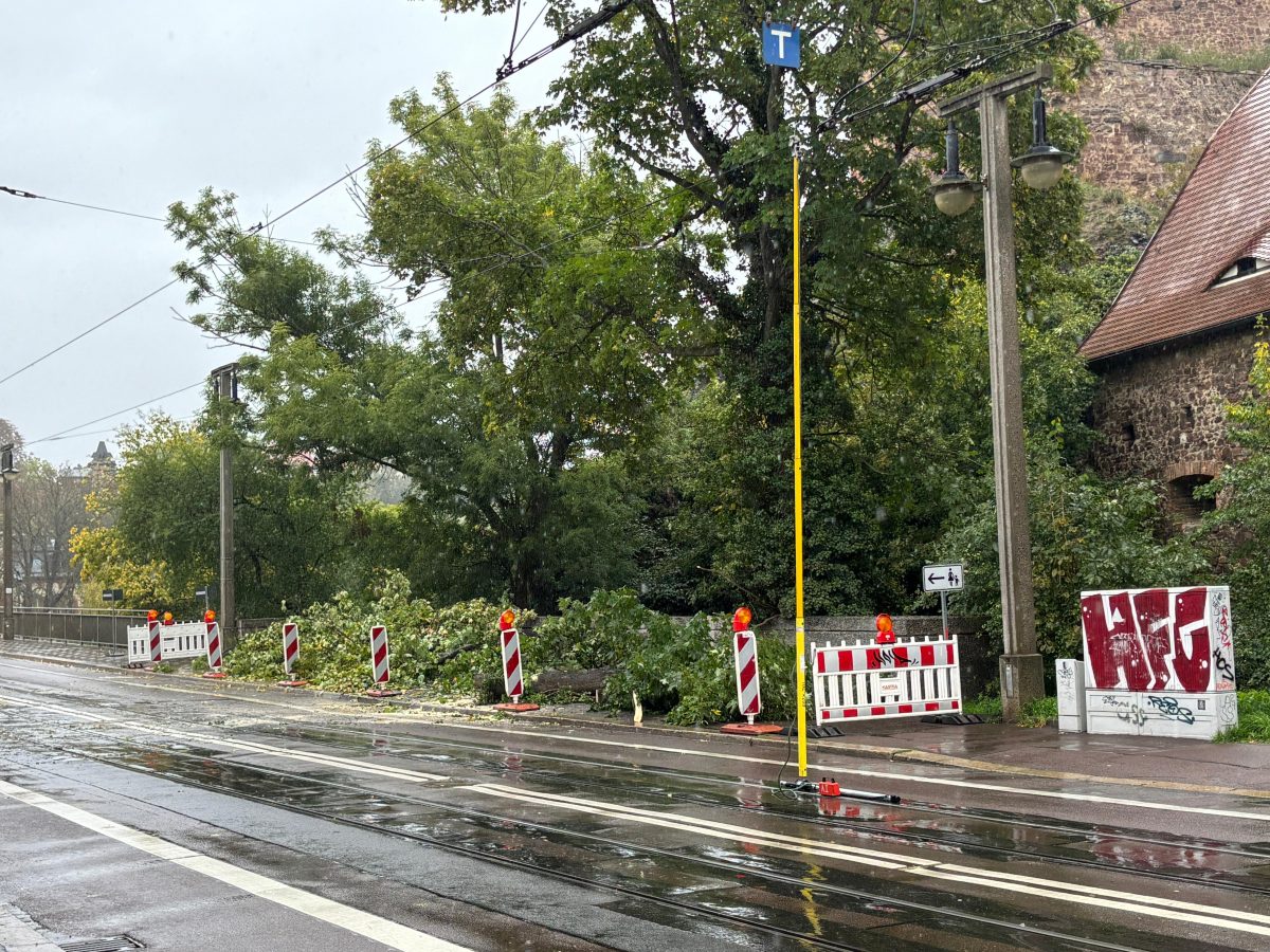 Baum kippt in der Kröllwitzer Straße um und reißt Oberleitung mit – Sperrung aufgehoben