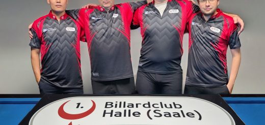 Parallel war die vierte Mannschaft bei der Zweitvertretung des 1. BC Eisleben in der Verbandsliga zu Gast. Dinh Thai Bui erwischte einen sehr guten 10-Ball-Satz, welchen er mit 6:0 für sich entscheiden konnte. Nach den beiden Siegen von Huu Nam Hoang (9-Ball) und Mario Schnell (8-Ball) wurde der Punktestand der Hallenser auf 3:0 erhöht. Im verbliebenen 14/1 von Spielführer Stefan Baumann konnte sich der der Spieler der Gastgeber durchsetzen und somit den Ehrenpunkt erzielen. In der Rückrunde verlor Huu Nam Hoang sein 8-Ball recht deutlich. Stefan Baumann setzte sich im Anschluss in seinem 10-Ball-Match souverän durch. Nach der Niederlage von Dinh Thai Bui im 9-Ball ging es im letzten 14/1 um Sieg oder Unentschieden. Die Partie von Mario Schnell war spannend bis zum Schluss und der Gastgeber brachte die Führung am Ende über die Ziellinie. Somit musste sich beide Teams mit einem Unentschieden zufriedengeben. Die Hallenser befinden sich aktuell punktgleich mit dem Tabellenzweiten auf Rang drei.