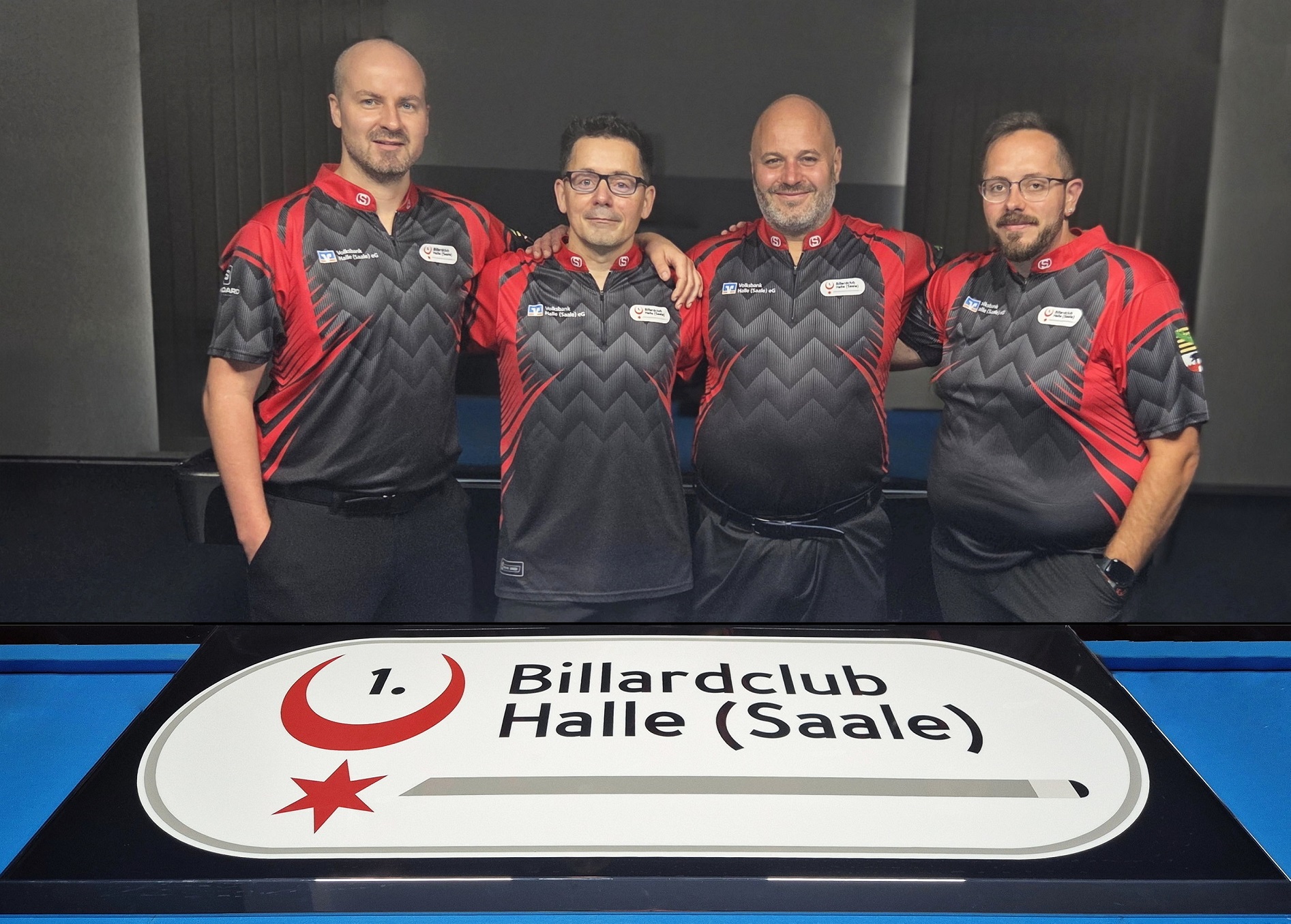 Die erste Mannschaft des 1. Billardclub Halle (Saale) empfing am Samstag im Rahmen des Heim-Doppelspieltags in der Regionalliga Ost die zweite Mannschaft des 1. PBC Wedding aus Berlin und konnte sich am Ende über einen 5:3-Heimerfolg freuen. In einer Begegnung mit vielen engen Partien bewiesen die Hallenser erneut Nervenstärke und entschieden mehrere Schlüsselspiele knapp zu ihren Gunsten. Die Auftaktrunde begann aus hallischer Sicht vielversprechend. Lukas Röse brachte Halle im 14/1 direkt in Führung und unterstrich seine Rolle als Spielführer. Im Anschluss geriet der Rhythmus jedoch etwas ins Stocken: Ronny Dubb musste sich im 8-Ball klar geschlagen geben, sodass der Ausgleich folgte. Danach zeigte Halle Moral. Sascha Bork setzte sich im 9-Ball mit 9:8 knapp durch und stellte erneut die Führung her, ehe Patrick Gautzsch im 10-Ball ebenfalls ein denkbar enges Match mit 8:7 für sich entschied. Zur Halbzeit lag Halle somit mit 3:1 vorn. In der Rückrunde wurde es noch einmal spannend. Zwar konnte Halle im 14/1 einen weiteren wichtigen Punkt einfahren, doch anschließend geriet das Heimteam noch einmal unter Druck. In den folgenden Partien musste Halle zwei Punkte abgeben, wodurch die Gäste den Anschluss suchten und die Begegnung bis zum Schluss offenhielt. Den entscheidenden Schlusspunkt setzte schließlich Ronny Dubb, der im 10-Ball eine konzentrierte Leistung zeigte und durch seinen ersten Saisonsieg den fünften Punkt für Halle sicherte. Damit machte die erste Mannschaft den 5:3-Heimsieg perfekt.