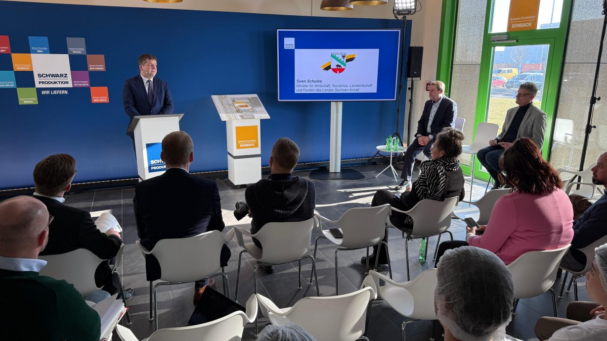 Im Rahmen eines Rundgangs durch die Bonback Halle (Saale) zeigte sich Wirtschaftsminister Sven Schulze erfreut: „Die Investition der Schwarz Produktion ist ein starkes Signal für Halle, für Sachsen-Anhalt und für unsere wirtschaftliche Entwicklung. 300 Millionen Euro, über 400 neue Arbeitsplätze – das zeigt: Unser Bundesland bietet Unternehmen hervorragende Bedingungen, um zu wachsen. Das sichert Jobs, stärkt unsere Region und macht deutlich, dass Sachsen-Anhalt ein Top-Standort für Investitionen ist.“