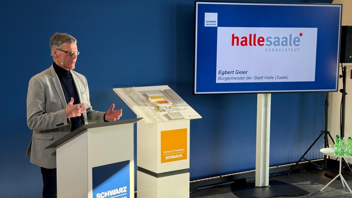 Bürgermeister Egbert Geier: „Der Ausbau von Bonback Halle zeigt einmal mehr, dass sich die Stadt Halle auf dem richtigen Weg einer nachhaltigen und zukunftsorientierten Wirtschaftsentwicklung befindet und beste Bedingungen für Wirtschaftsansiedlungen bietet. Wir freuen uns, mit der Schwarz Produktion einen starken Partner gefunden zu haben.“