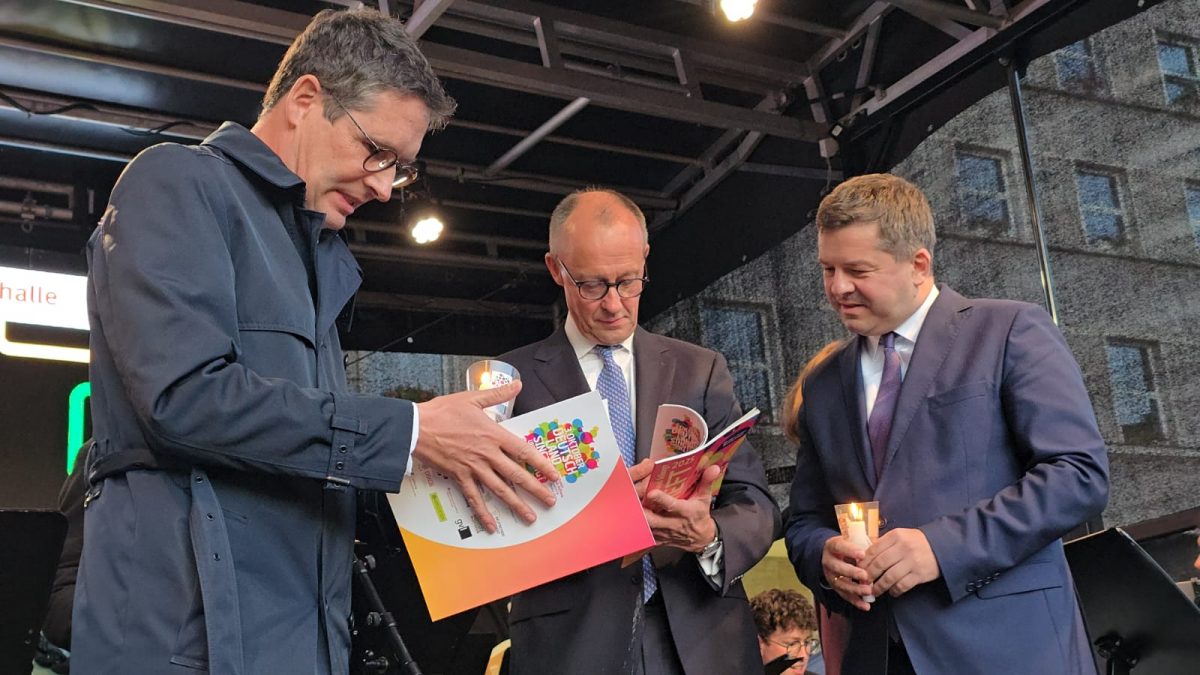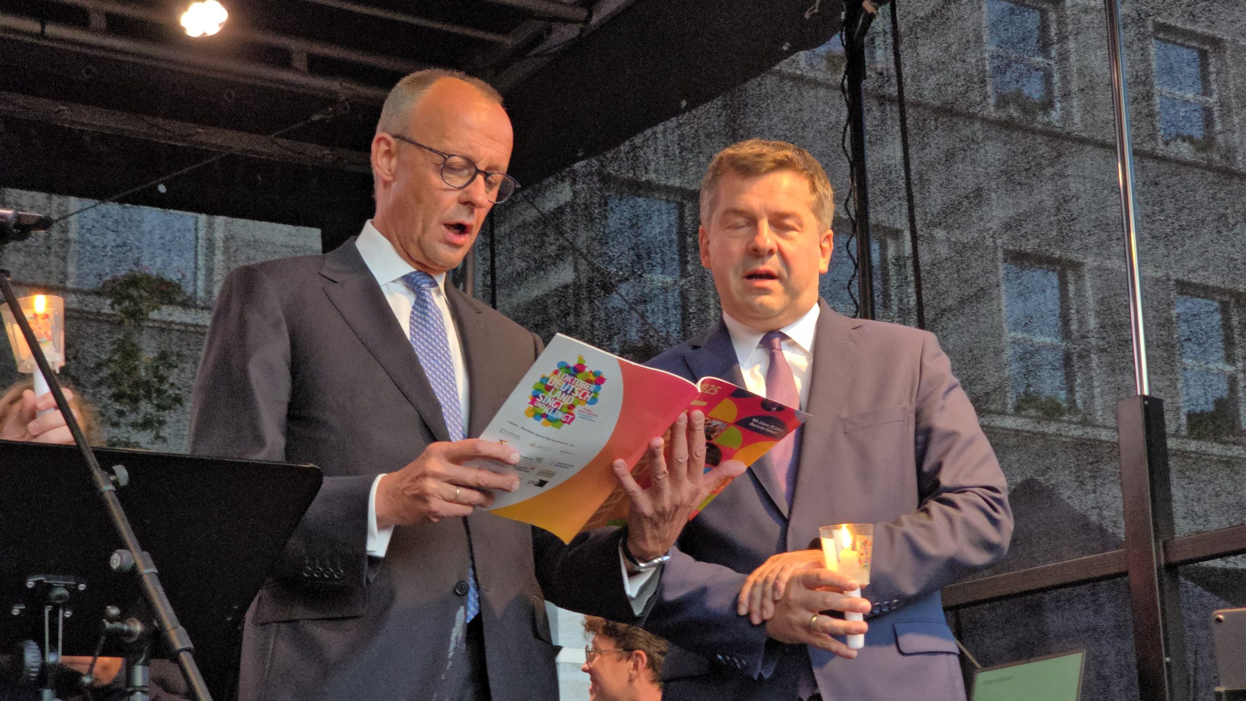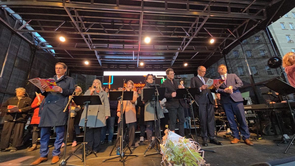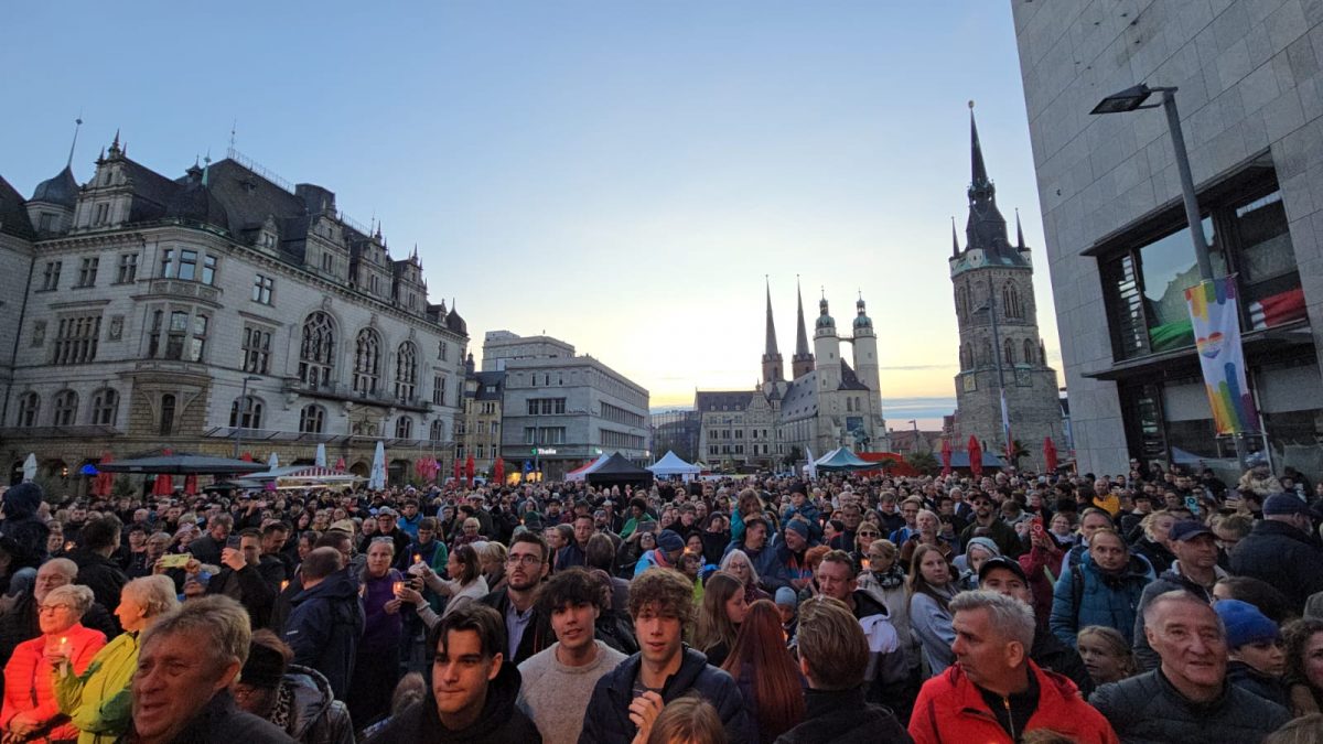 Tag der deutschen Einheit in Halle: Kanzler Merz ehrt den Mut der Ostdeutschen, gedenkt der Diktatur-Opfer und beteiligt sich am Kerzensingen, einzelne Buhrufe