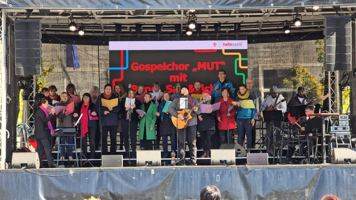 Musikalisch sorgten der Gospelchor „MUT“ (Artern) mit der Band „Salz & Licht“ und der gemischte Chor der Singschule für Unterhaltung. Das kulinarische Angebot war dank verschiedener Vereine abwechslungsreich, von somalischen, persischen oder afghanischen Spezialitäten bis zur klassischen Bratwurst. Auch etliche Stadträte schauten im Laufe der Veranstaltung vorbei und standen für Gespräche bereit, darunter Hendrik Lange (Linke), Wolfgang Aldag (Grüne), Andreas Wels (Hauptsache Halle), Jan Riedel und Hans-Joachim Berkes (CDU), Dörte Jacobi (Die PARTEI) und Ferdinand Raabe (Volt).