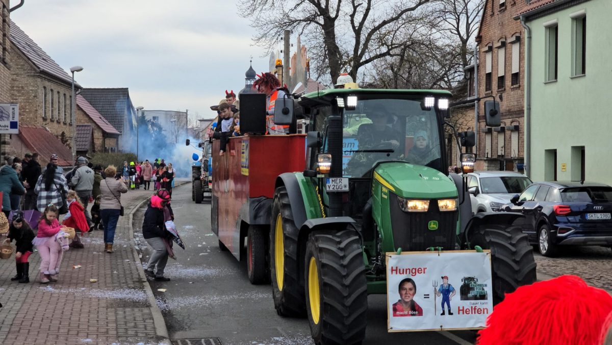 In Teutschenthal wird die 66. Karnevalssession gefeiert. Und diesmal war auch die bevorstehende Bundestagswahl Thema auf zahlreichen Wagen.