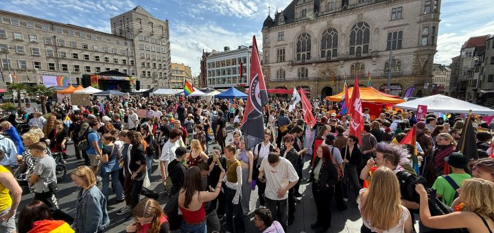 Blutige Protestaktion in Halle: Linke Jugendgruppe warnt vor Wehrpflicht