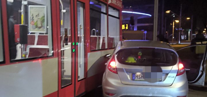 Am Dienstagabend kurz vor halb zwölf kam es zu einm Verkehrsunfall am Riebeckplatz. Eine Straßenbahn und ein PKW sind kollidiert. Verletzt wurde niemand. Nach 40 Minuten war die Strecke wieder frei.