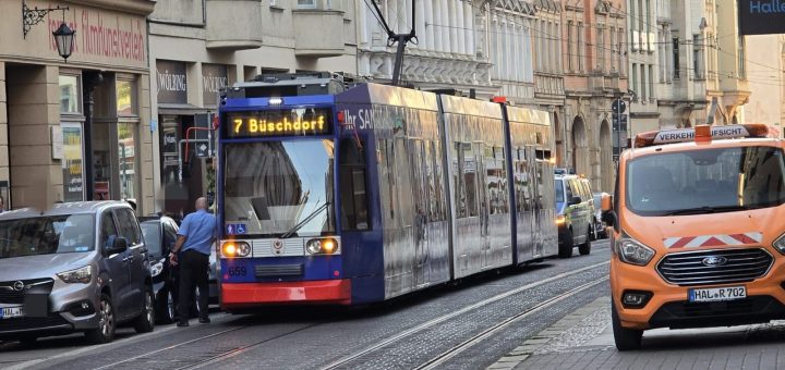 In der Merseburger Straße am Bergmannstrost hat sich am Montagnachmittag gegen 15 Uhr ein Unfall zwischen einer Straßenbahn und einem Pkw ereignete. Die Straßenbahnlinien 2 und 5 mussten für mehr als eine Stunde umgeleitet...