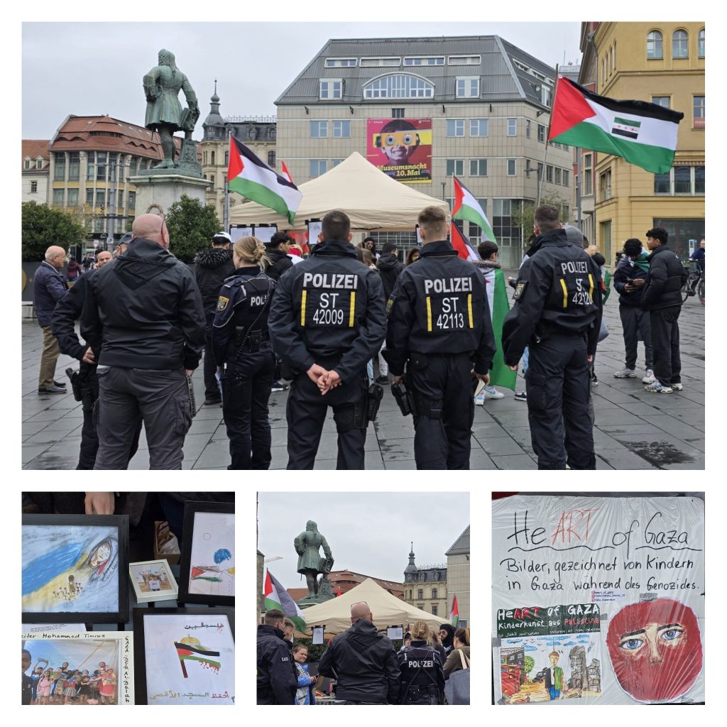 Am Karfreitag fand auf dem Marktplatz von Halle eine Versammlung unter dem Motto „Free Palestine“ statt. Rund 30 Menschen nahmen an der Aktion teil, zu der die Gruppe „Students for Palestine“ aufgerufen hatte. Anlass war der „Tag der palästinensischen Gefangenen“, der weltweit jährlich am 17. April begangen wird und auf das Schicksal inhaftierter Palästinenser im israelischen Justizsystem aufmerksam machen soll.
