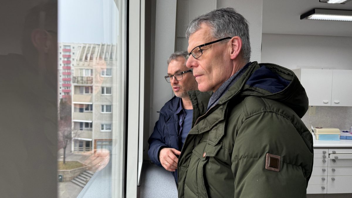 Am Mittwoch hat sich Bürgermeister Egbert Geier einen Überblick über die Angebote verschafft. Von Geschäftsführer Mario Kerzel, übrigens seit der Kommunalwahl auch Stadtrat für Hauptsache Halle, ließ er sich durchs Gebäude führen. Auf 4 Ebenen gibt es 18 verschiedene Arztpraxen und 17 Dienstleistungseinrichtungen: Friseur, Apotheke, Beratungsstellen, drei Kinderärzte, Zahnärzte, zwei Medizinische Versorgungszentren der Uniklinik und ein handchirugrisches Zentrum. Auch eine 24-Stunden-Intensivpflege gehört zum Angebot. Beliebt nicht nur bei Mitarbeitern, auch bei Anwohnern, ist zudem die Kantine, in der es Speisen zu einem günstigen Preis gibt. Nachdem der vorherige Betreiber aufgehört hatte, konnte das Gesundheitszentrum einen gebürtigen Tunesier als Betreiber gewinnen. 25.000 Besucherinnen und Besucher kommen pro Monat.