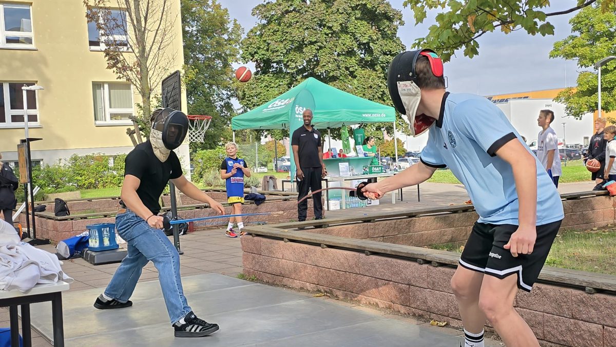 Die jungen Nachwuchsathleten und -athletinnen der Sportschulen hatten die Gelegenheit, auch eine der anderen an der Schule ansässigen Sportarten selbst zu testen. “Es ist wichtig, auch mal über den eigenen Tellerrand hinaus zu schauen”, sagte Schulleiter Schmidt. Der Landessportbund als Träger des Internats und der Mensa präsentiert sich mit besonderen Angeboten. Außerdem organisierten die Schülerinnen und Schüler des 12. Jahrgangs einen Spendenlauf an der Eliteschule des Sports, unterstützt wird der Verein zur Förderung krebskranker Kinder. Auch Bildungsminister Jan Riedel ist eine Runde gelaufen.