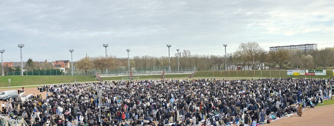 Der muslimische Fastenmonat Ramadan geht zu Ende. Aus diesem Anlass fand auch in diesem Jahr wieder das Gebet der Gläubigen zu Eid Al-Fitr / Zuckerfest / Fest des Fastenbrechens (عيد الفطر) im Stadion in … Fastenbrech-Gebet zu Eid Al-Fitr / Zuckerfest: Rund 4.500 Teilnehmer im Stadion in Halle-Neustadt – Verschiebung wegen ÖPNV weiterlesen