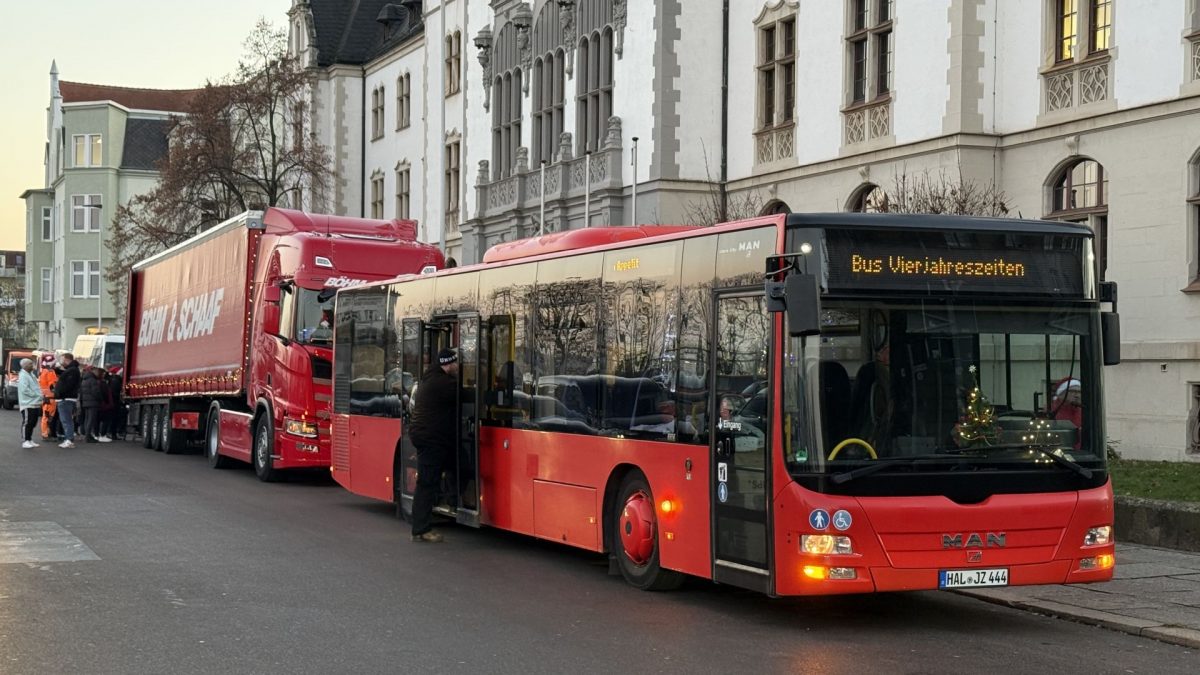 Am vergangenen Mittwoch erstrahlte auf den Straßen von Halle (Saale) wieder ein besonderer Glanz, als der vierte Weihnachtskonvoi des Vereins „Bus Vierjahreszeiten e. V.“ seine traditionelle Weihnachtstour antrat. Der festlich geschmückte Weihnachtstruck, der mit unzähligen Lichterketten und einer liebevollen Dekoration bereits von Weitem auf sich aufmerksam machte, brachte nicht nur weihnachtliche Stimmung, sondern vor allem konkrete Hilfe und menschliche Wärme zu den Bedürftigen der Stadt.