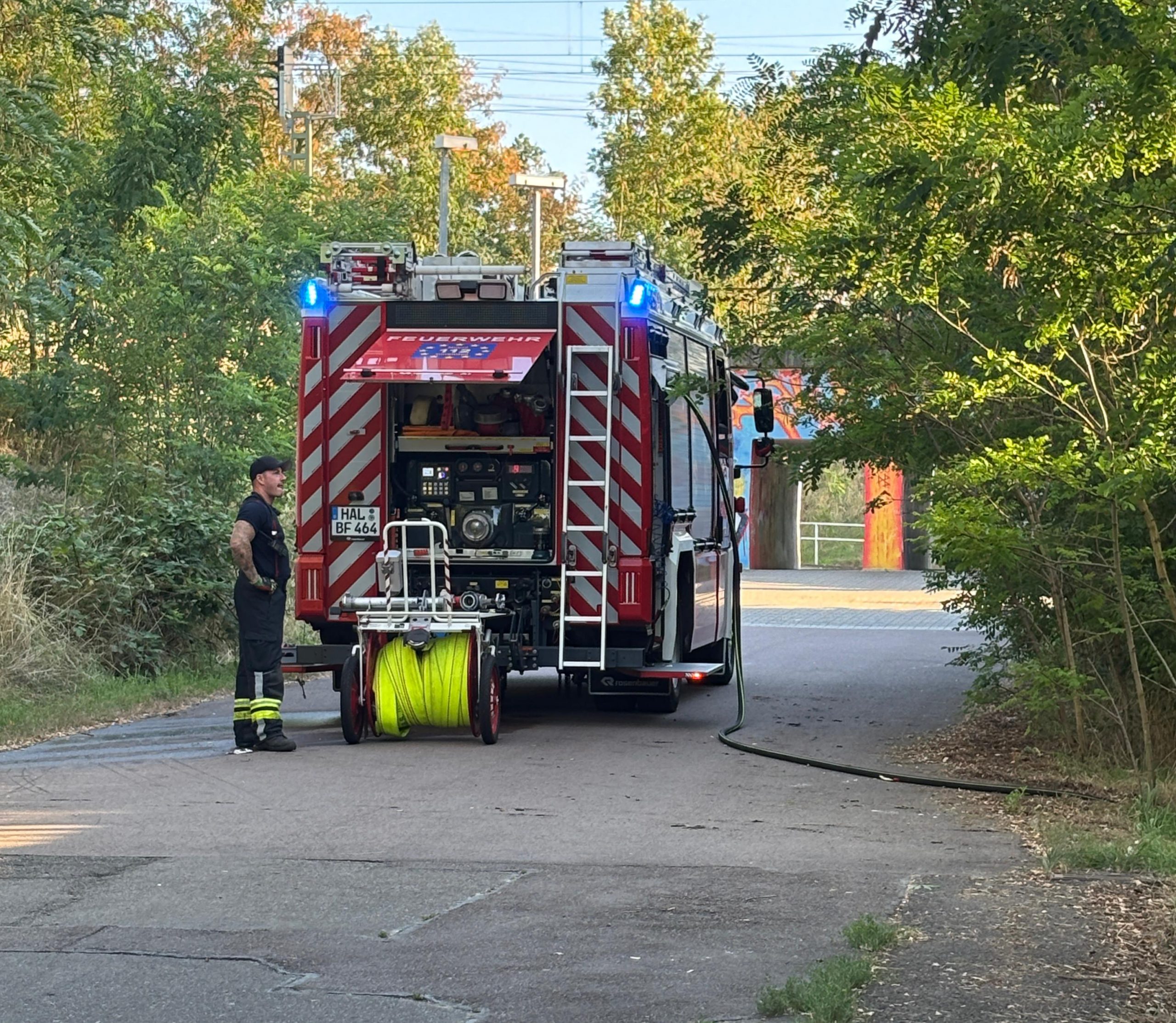 Und in Halle gibt es noch viel Ödland, was brennen kann. Meterhohes vertrocknetes Unkraut ziert die Stadt wo vorher Rasen oder Grünflächen waren.