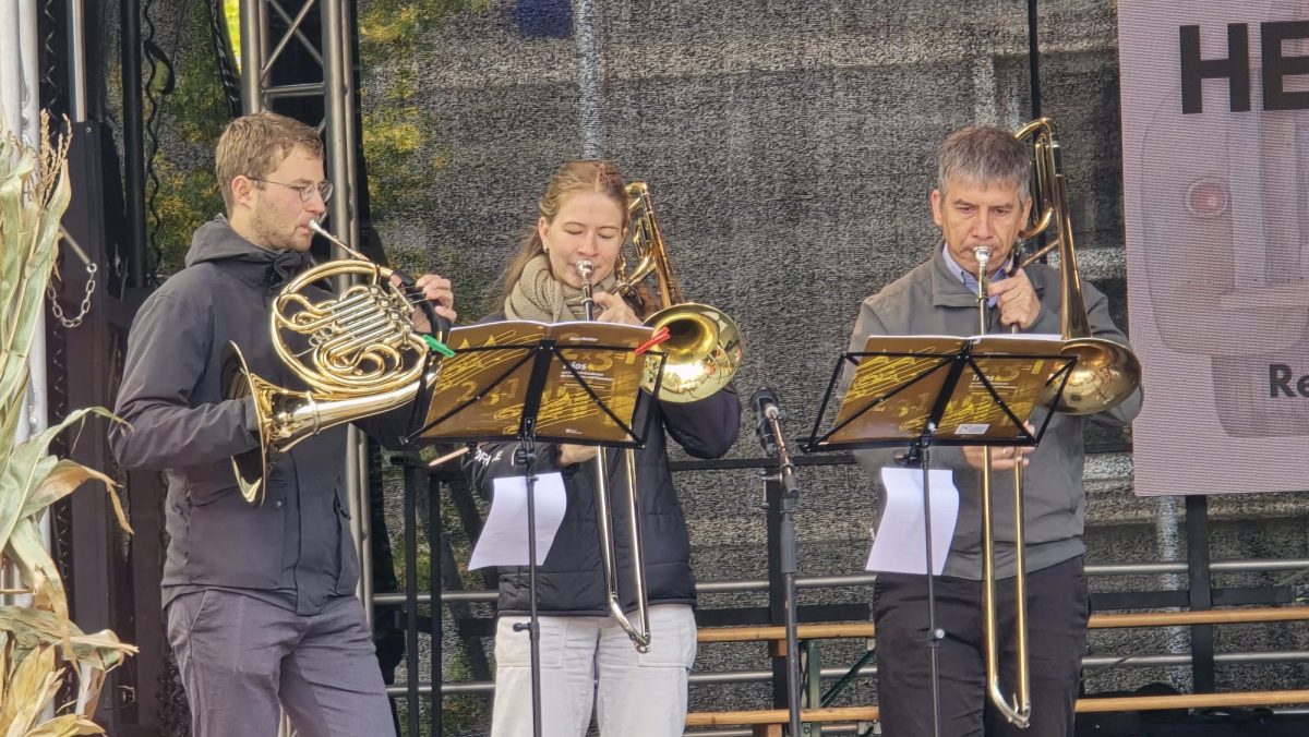 Musikalisch begleitet wurde der Freiluftgottesdienst von den Bläsern der St. Laurentius-Gemeinde, deren festliche Klänge dem Marktplatz eine feierliche Atmosphäre verliehen. Pfarrerin Simone Carstens-Kant begrüßte die Besucher herzlich und mit einem Augenzwinkern: „Danke, dass Sie so mutig waren und sich warm angezogen haben – und auch ein bisschen regensicher!“