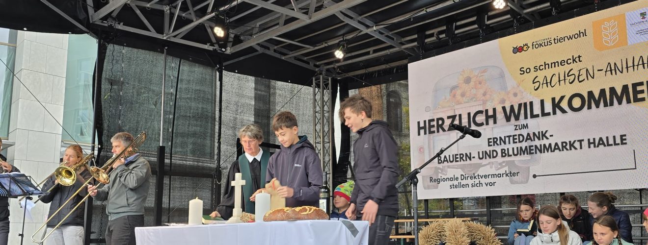 Erntedank unter freiem Himmel – Halles Marktkirchengemeinde feiert Gottesdienst auf dem Marktplatz