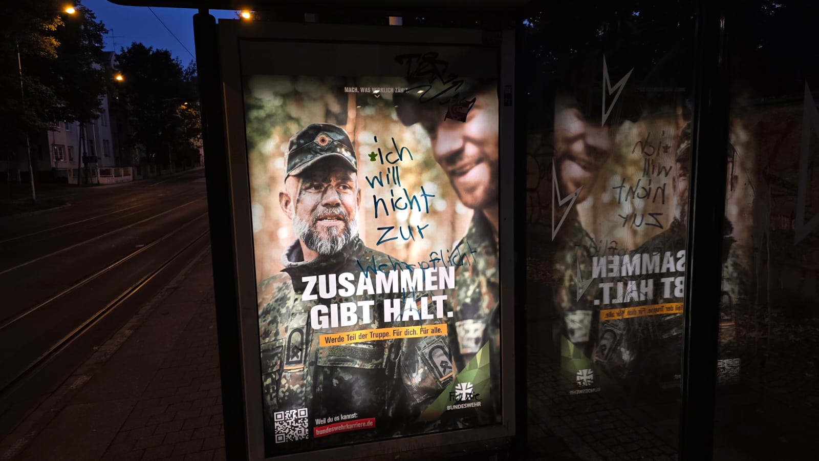 „Fick die Bundeswehr“: Proteste gegen die Wehrpflicht an Bundeswehr-Plakaten