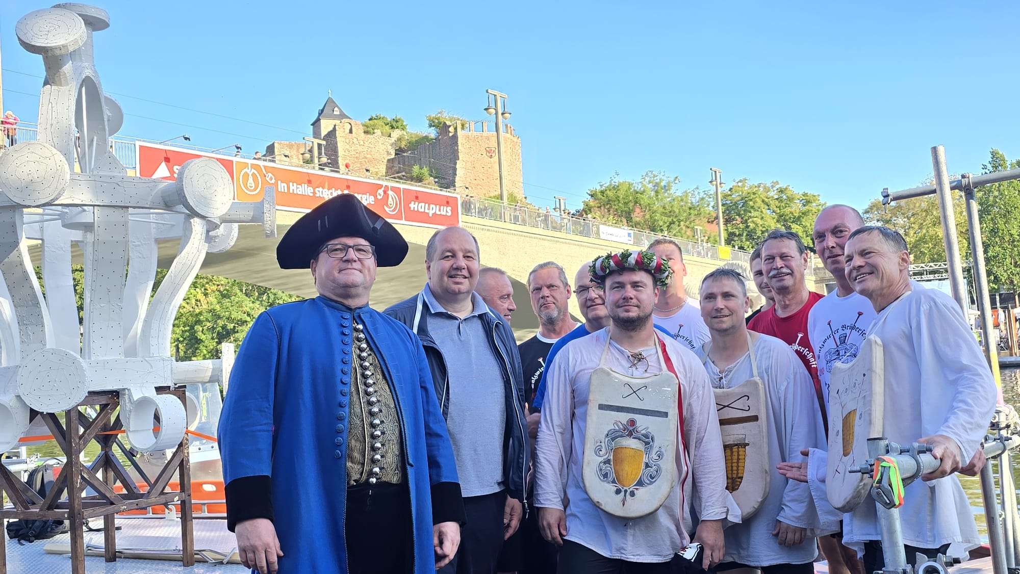 Am Samstagnachmittag war es wieder so weit: Die Salzwirker-Brüderschaft der Halloren trat gegen ihre langjährigen sportlichen Rivalen vom Deutschen Roten Kreuz (DRK) an. Doch die Grenzen sind hier fließend – manch ein Hallore ist auch ehrenamtlich beim DRK aktiv. So ist es nicht nur ein Wettkampf, sondern auch ein freundschaftliches Duell auf dem Wasser der Saale.