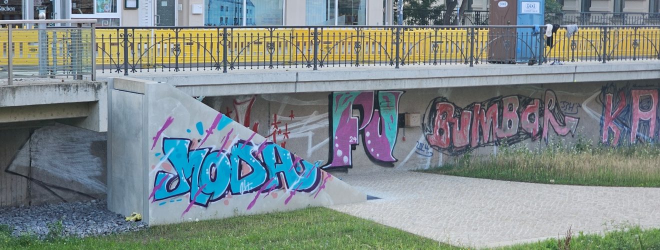 Momentan ruhen ja die Arbeiten am Mühlgraben am Robert-Franz-Ring wieder. Es fehlen unter anderem noch Teile für die Treppe. Und während die Bauarbeiter derzeit nicht da sind, haben sich Graffiti-Schmierer ausgetobt. Unter anderem wurde … Flaniermeile am Mühlgraben: noch nicht fertig, aber schon beschmiert weiterlesen