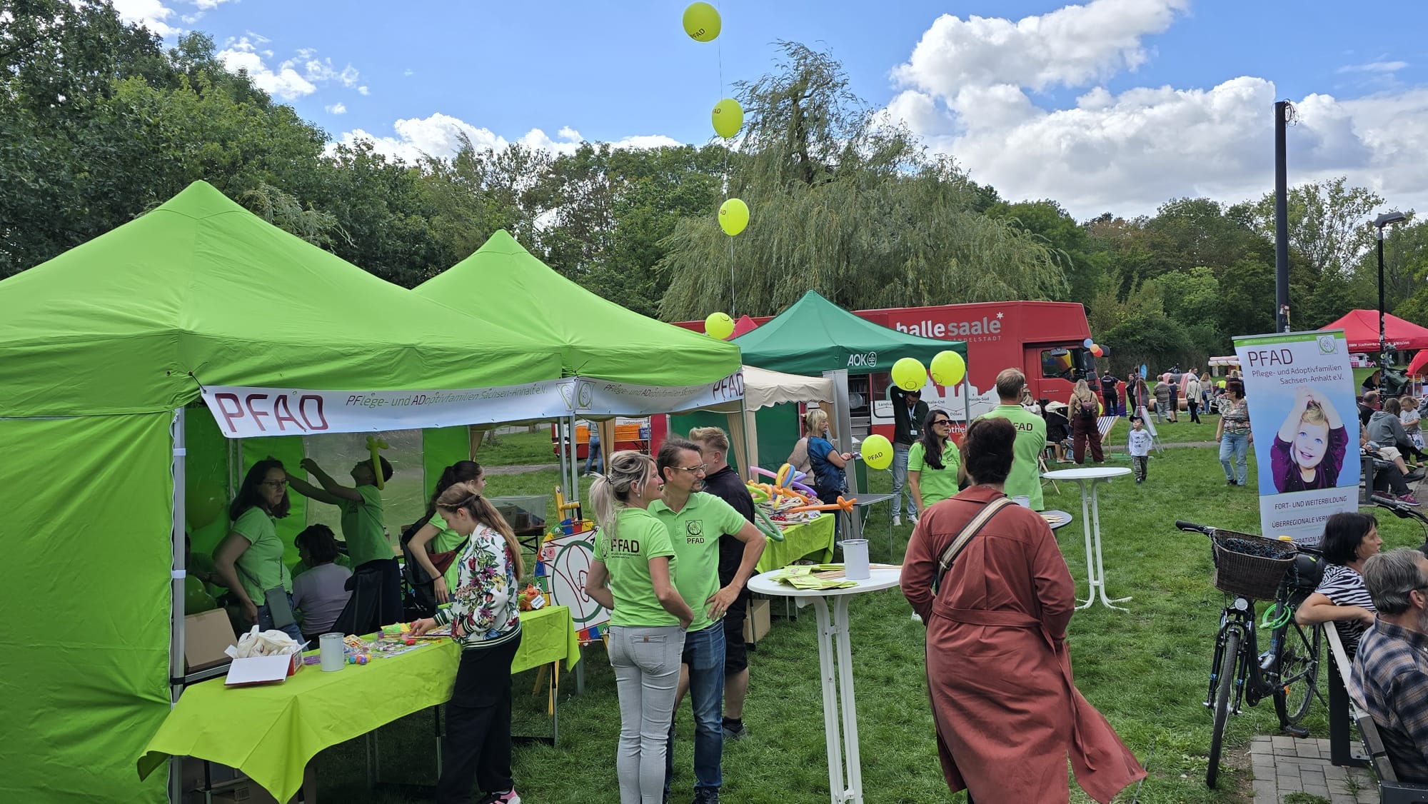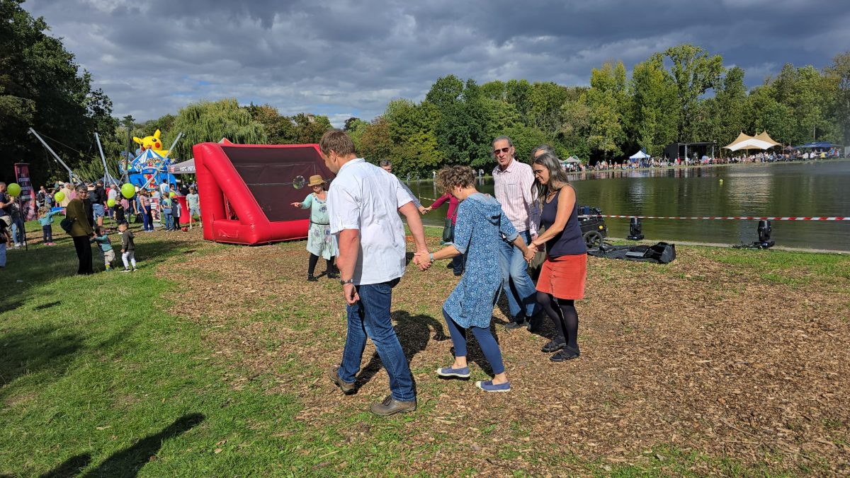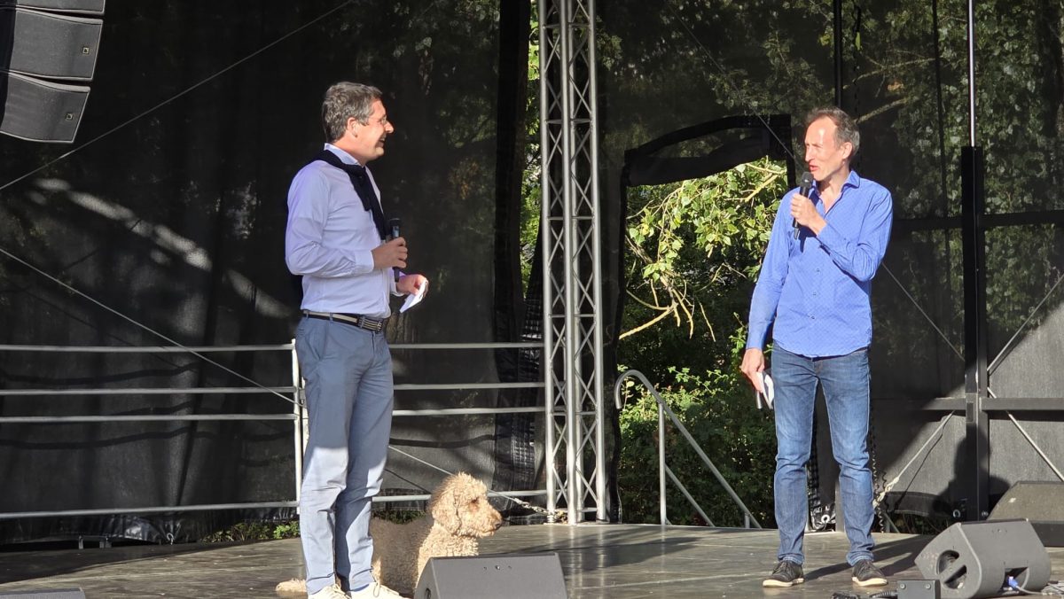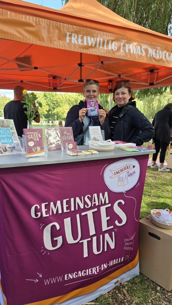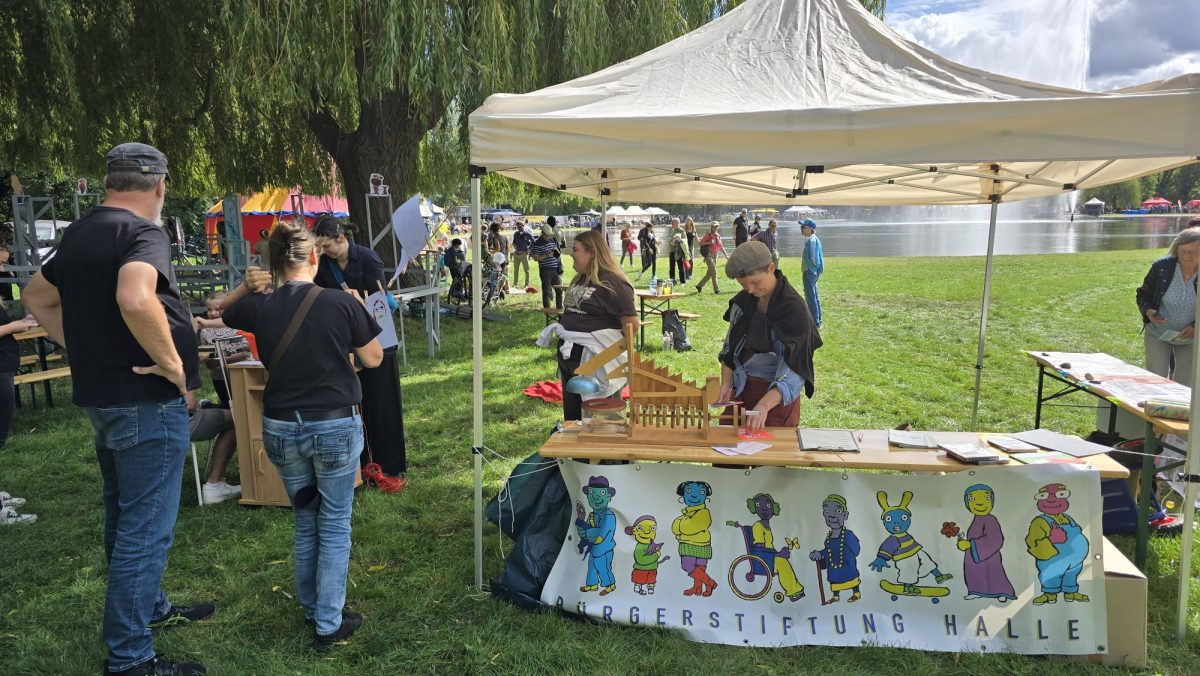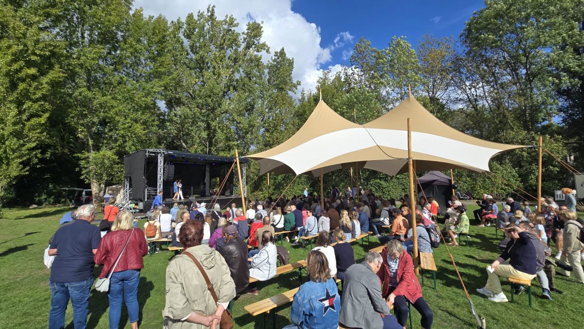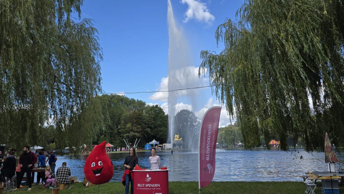 Neben Ausnahmekünstlern wie Karsten Troyke bin ich selbst in die Bresche gesprungen und habe „Imagine“ von John Lennon gesungen, auch „Der Traum ist aus“ (Rio Reiser), zusammen mit unser wunderbaren halleschen Liedermacherin Anna Maria Zinke. Und, ja, vielleicht ist der Traum tatsächlich aus, dass immer alles schön ist, mit Bratwurst und Kuchen und Getränken, und beim Fontänenfest gibt es nur Wohlfühl und „klassisch“ Musik. Tun wir was dafür, dass der nächste Jahrgang immer noch im Frieden stattfindet! Nehmt das nicht als Gegeben! Mein Sohn bekommt gerade seine Papiere vom Kreiswehrersatzamt. Schauen sie bitte alle mal hin auf das, was über unseren Köpfen so geschieht. Das Fontänefest kann sich ja nicht abkoppeln und einen Nachmittag und Abend einer Wohlfühlkapsel sein.