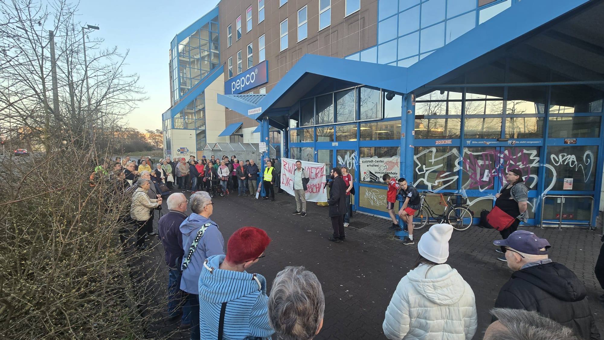 Seit dreieinhalb Wochen ist das Südstadt-Center in Halle (Saale) geschlossen. Die Stadt hatte wegen Brandschutzmängeln eine Nutzungsuntersagung für das Einkaufszentrum am Südstadtring erlassen. Rund 50 Menschen haben am Freitag für den Erhalt und die Wiedereröffnung protestiert. „Beim Sparen sind sie fix, für’n Süden tun sie nix“, wurde gerufen.