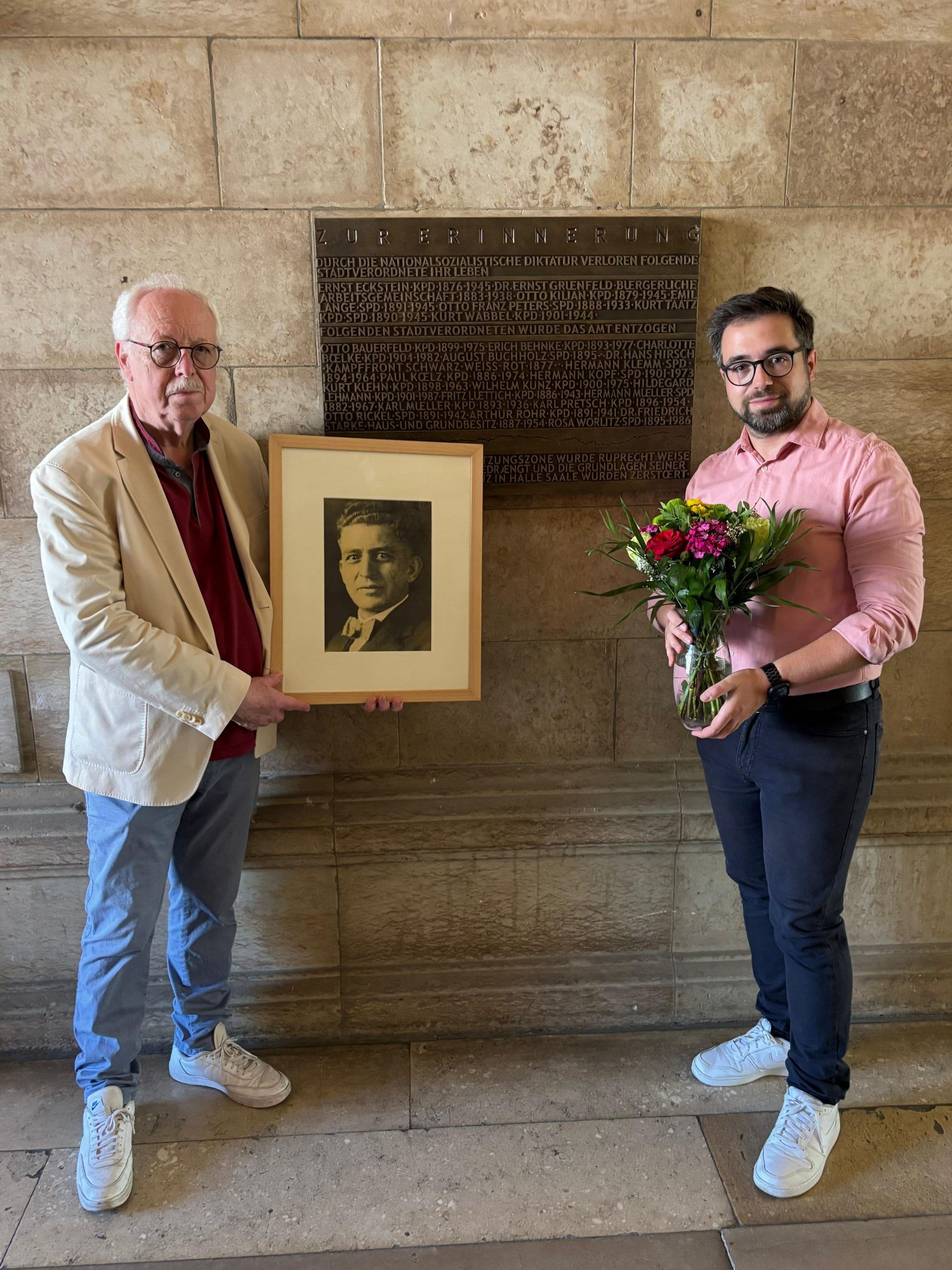Anlässlich des heutigen 92. Todestages von Franz Peters, langjähriger Stadtverordneter in und Reichstagsabgeordneter für Halle (1924-1933) sowie mutiger Gegner des sogenannten Ermächtigungsgesetzes der Nationalsozialisten, haben der Vorsitzende der SPD Halle (Saale), Peter Dehn, und der Vorsitzende der SPD-Fraktion im Stadtrat, Eric Eigendorf, am Montag Blumen an der Gedenktafel im Stadthaus (Erdgeschoss) niedergelegt.