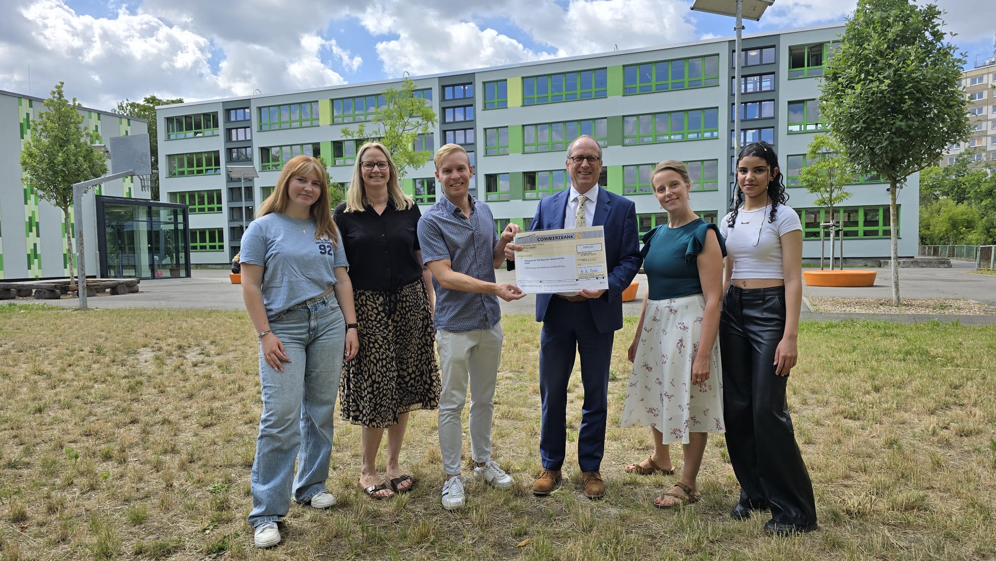 Der symbolische Spendenscheck wurde am Mittwoch auf dem Schulgelände offiziell übergeben. Die Freude bei Schulleitung, Lehrkräften und Schülern war groß – denn das Geld fließt in ein konkretes Herzensprojekt: die Aufwertung einer bislang ungenutzten Fläche auf dem Schulhof.