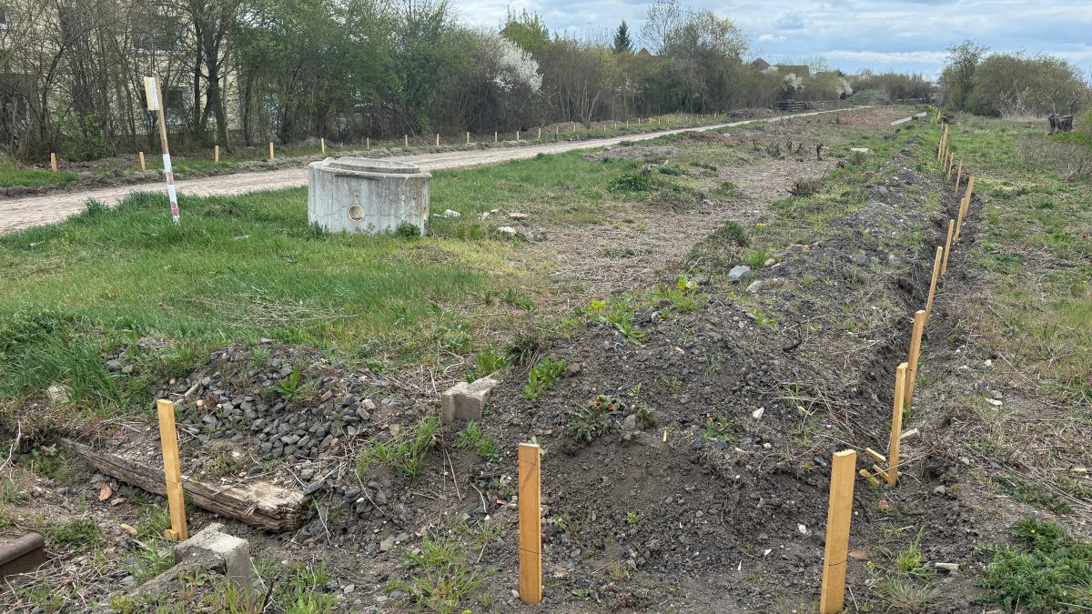 Bevor es jedoch mit dem Gleisbau richtig losgehen kann, müssen erst einmal die kleinen Bewohner des künftigen Schienenabschnitts umsiedeln: Zauneidechsen, wie die Untere Naturschutzbehörde festgestellt hat. Sie stehen unter strengem Schutz. Deshalb musste zunächst ein sogenannter Amphibienzaun errichtet werden, um die Tiere behutsam einzufangen.