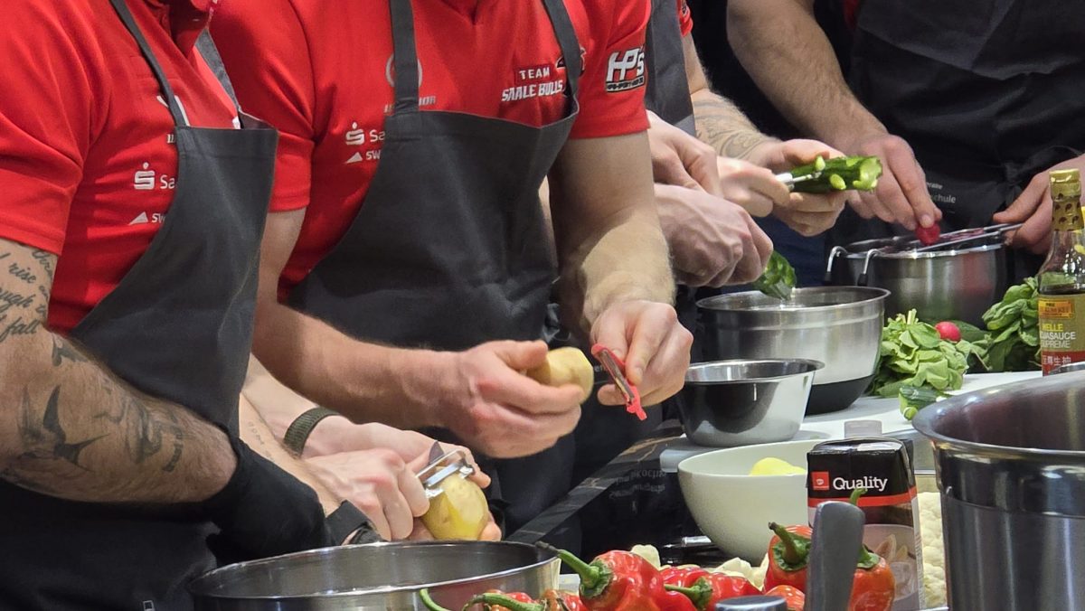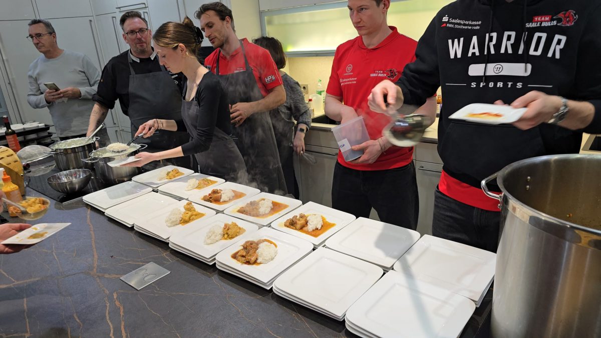 Harte Checks, feine Küche: Saale Bulls tauschen Eisfläche gegen Küchenstudio und brutzeln 3-Gänge-Menü