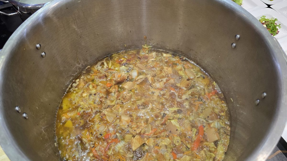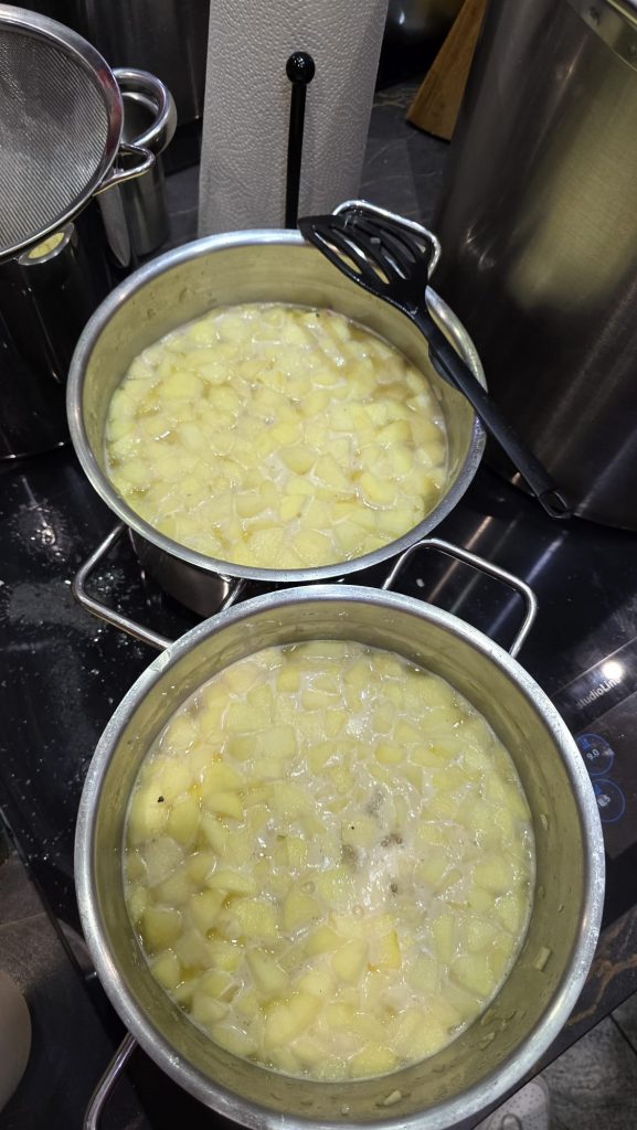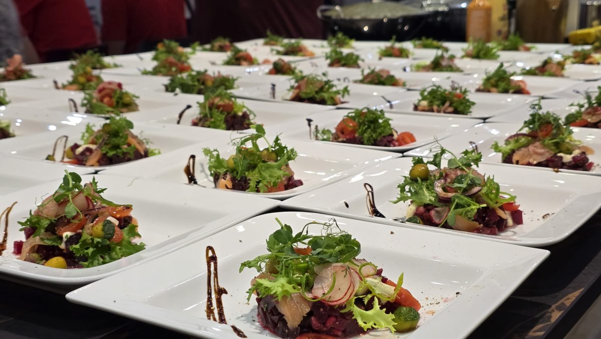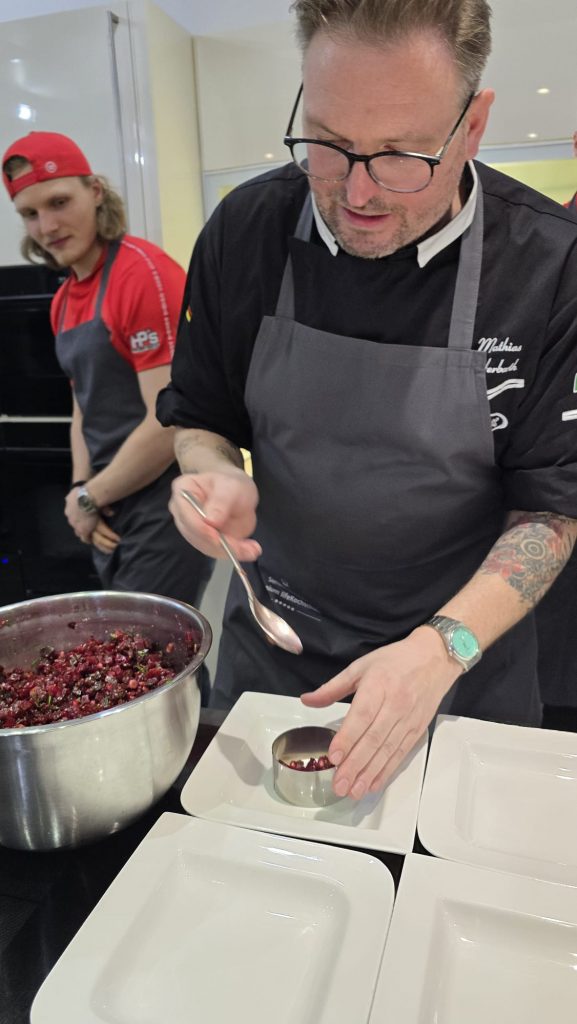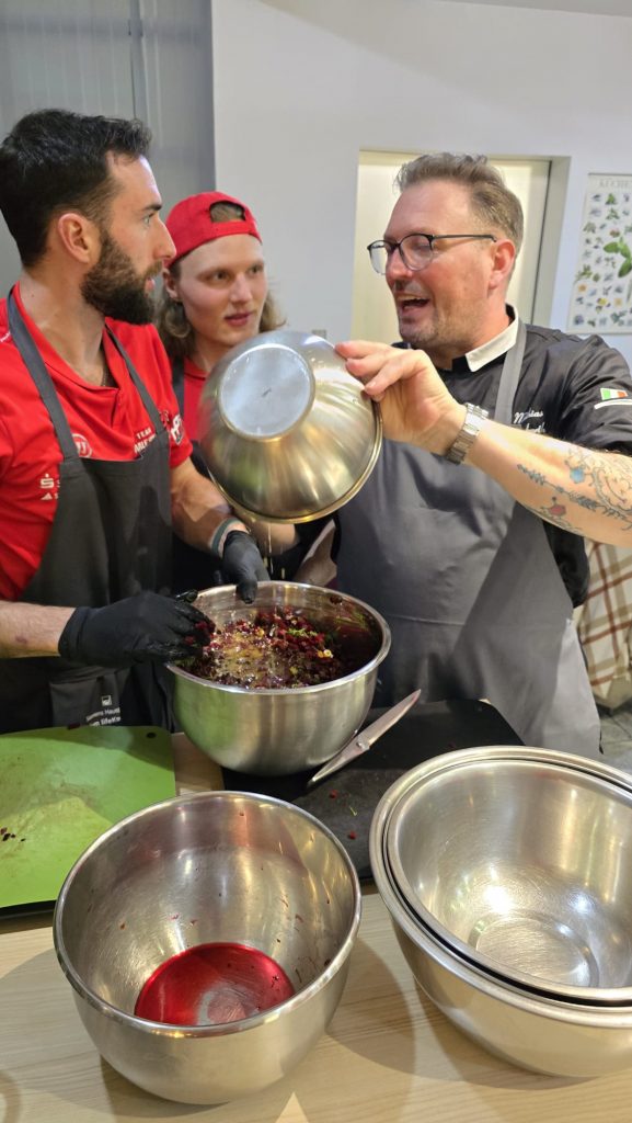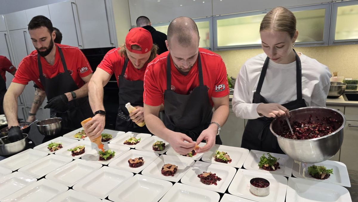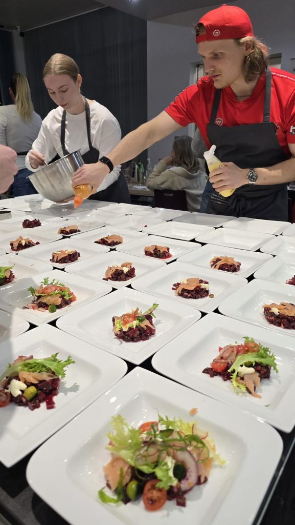 Kulinarisch zeigte sich das Team offen und experimentierfreudig. Den Auftakt machte ein fein abgeschmecktes Rote-Beete-Tatar, das mit seiner erdigen Frische überraschte und optisch wie geschmacklich überzeugte. Es folgte eine Apfel-Sellerie-Suppe, cremig und ausgewogen, mit einer angenehmen Balance aus Süße und Säure – perfekt als Übergang zum Hauptgang.