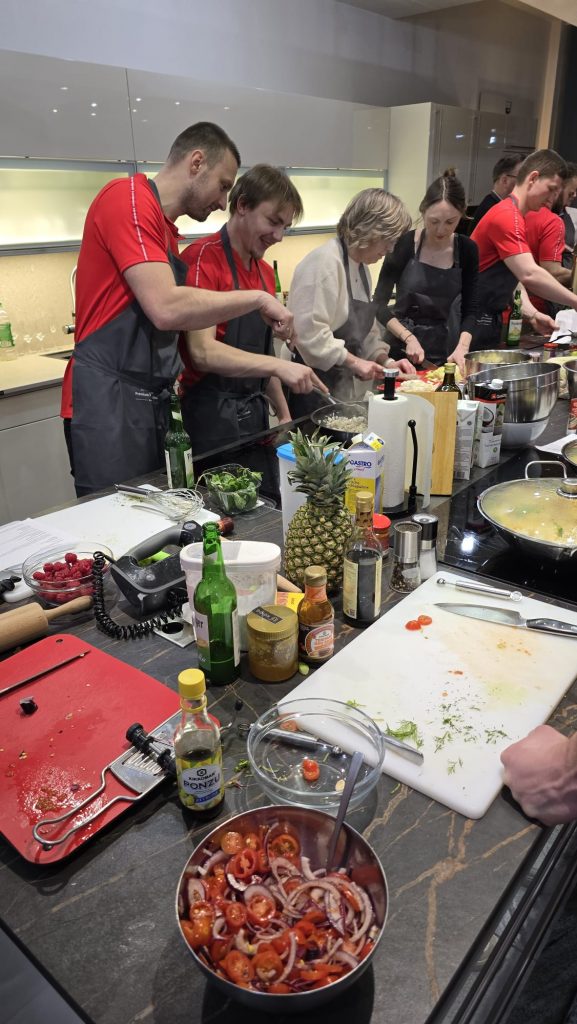 Am Ende des Abends saßen alle gemeinsam an einem langen Tisch, probierten die selbst zubereiteten Speisen und ließen den Tag Revue passieren. Gespräche zogen sich bis in den späten Abend, Gelächter erfüllte das Küchenstudio. Die Schürzen wurden abgelegt, doch der Teamgeist blieb.