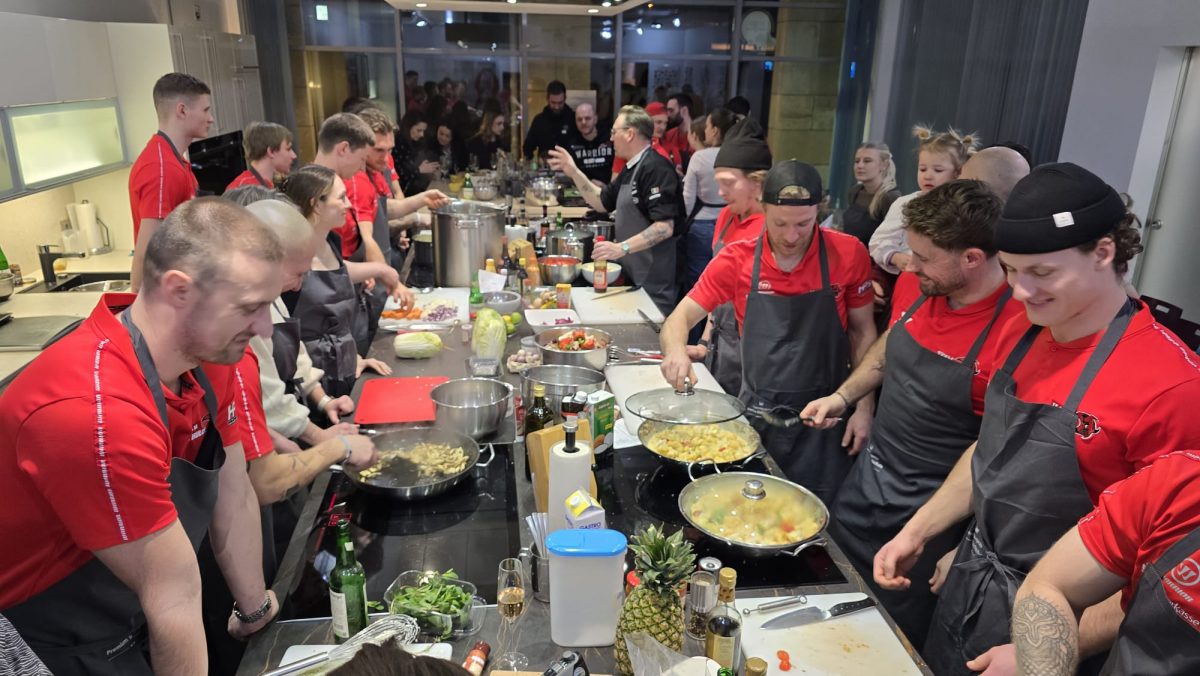 Was bleibt, ist mehr als die Erinnerung an ein gutes Menü. Das Kochen war vor allem ein Teambuilding-Event, das den Zusammenhalt stärkte und neue Gespräche ermöglichte. Abseits von Leistungsdruck und Tabellenständen begegneten sich alle auf Augenhöhe. Hier zählte nicht, wer die meisten Tore schießt, sondern wer die Zwiebeln richtig schneidet oder den perfekten Garpunkt trifft. „Solche Abende schweißen zusammen“, betont Christian Hommel gegenüber dubisthalle.de. „Man lernt sich anders kennen, entdeckt neue Seiten. Das wirkt sich auch positiv auf die tägliche Arbeit und letztlich auf die Leistung auf dem Eis aus.“