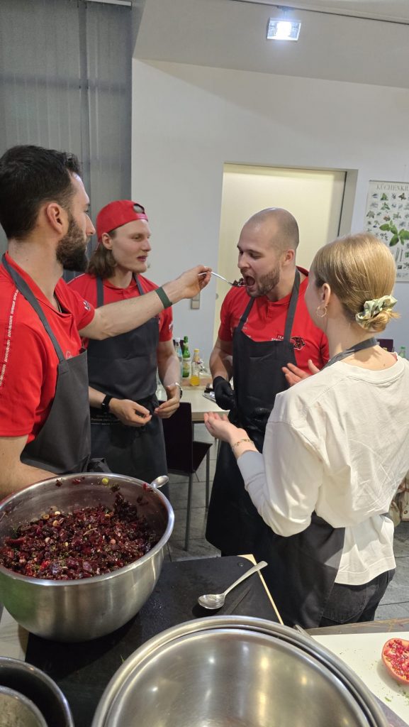 Das gemeinsame Kochen hat bei den Saale Bulls längst Tradition. Was einst als kleine Idee begann, ist heute ein fester Termin im Kalender des Clubs. „Es ist einfach etwas anderes, sich außerhalb des Trainings und der Spiele zu begegnen“, erklärt Sportdirektor Christian Hommel. „Hier kommen wirklich alle zusammen – Spieler, Trainer, Betreuer, Office-Mitarbeiter. Dieser Austausch in einer anderen Atmosphäre ist enorm wichtig.“