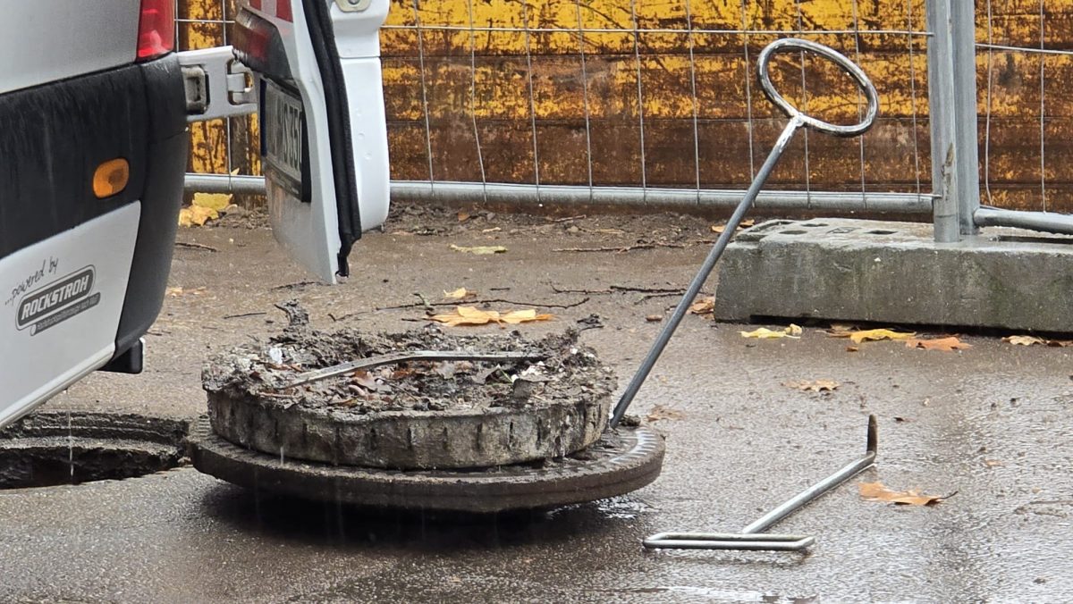 Die Sperrung soll bis 5. November andauern. Die Hallesche Wasser- und Stadtwirtschaft (HWS) ist vor Ort, kontrolliert einen Kanal.