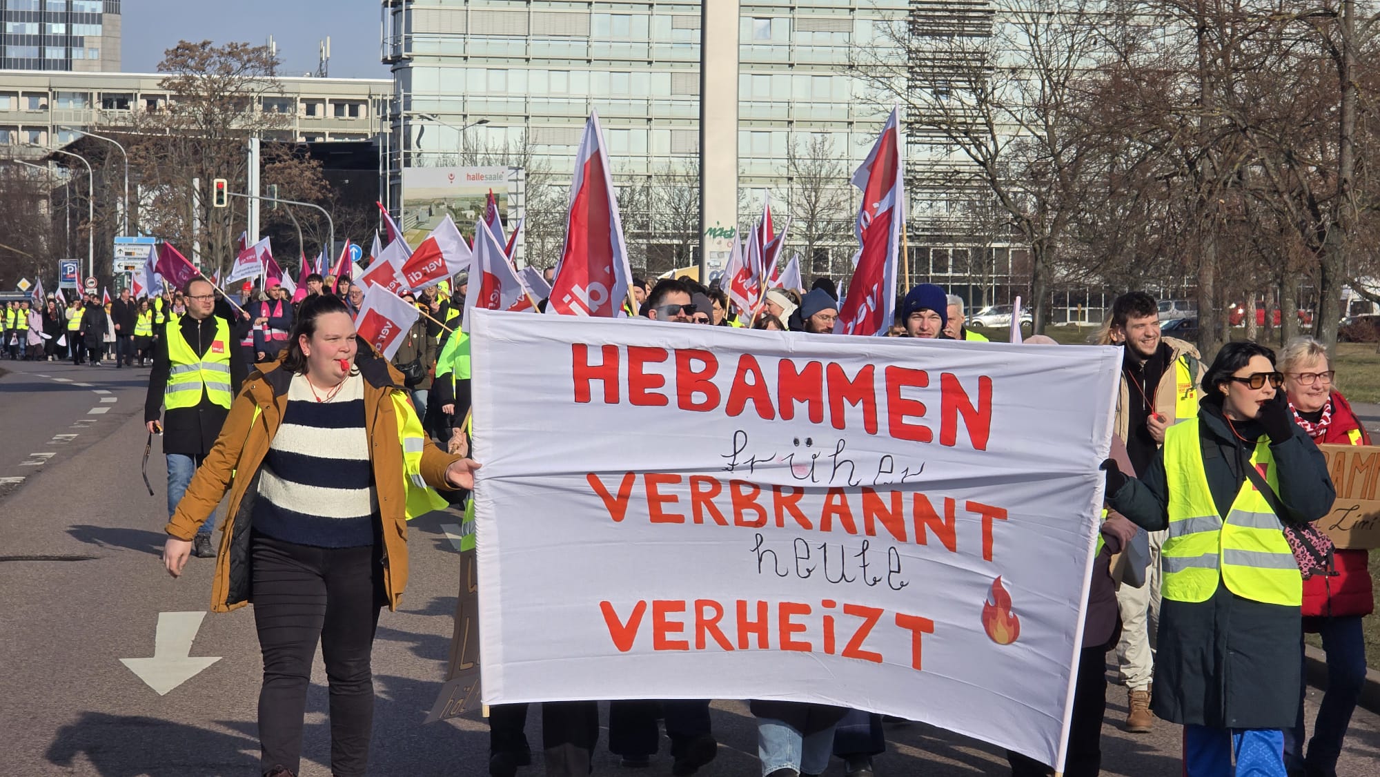 Mit einem ganztägigen Warnstreik und einer Demonstration durch die Innenstadt haben am heutigen Dienstag zahlreiche Beschäftigte des öffentlichen Dienstes in Halle ihrem Unmut Luft gemacht. Im Rahmen der laufenden Tarifrunde der Länder (TdL) hatte die Vereinte Dienstleistungsgewerkschaft ver.di zu der Arbeitsniederlegung aufgerufen. Betroffen waren unter anderem Landesverwaltungen, die Martin-Luther-Universität Halle-Wittenberg, die Hochschule Merseburg, das Universitätsklinikum Halle sowie die Franckeschen Stiftungen.