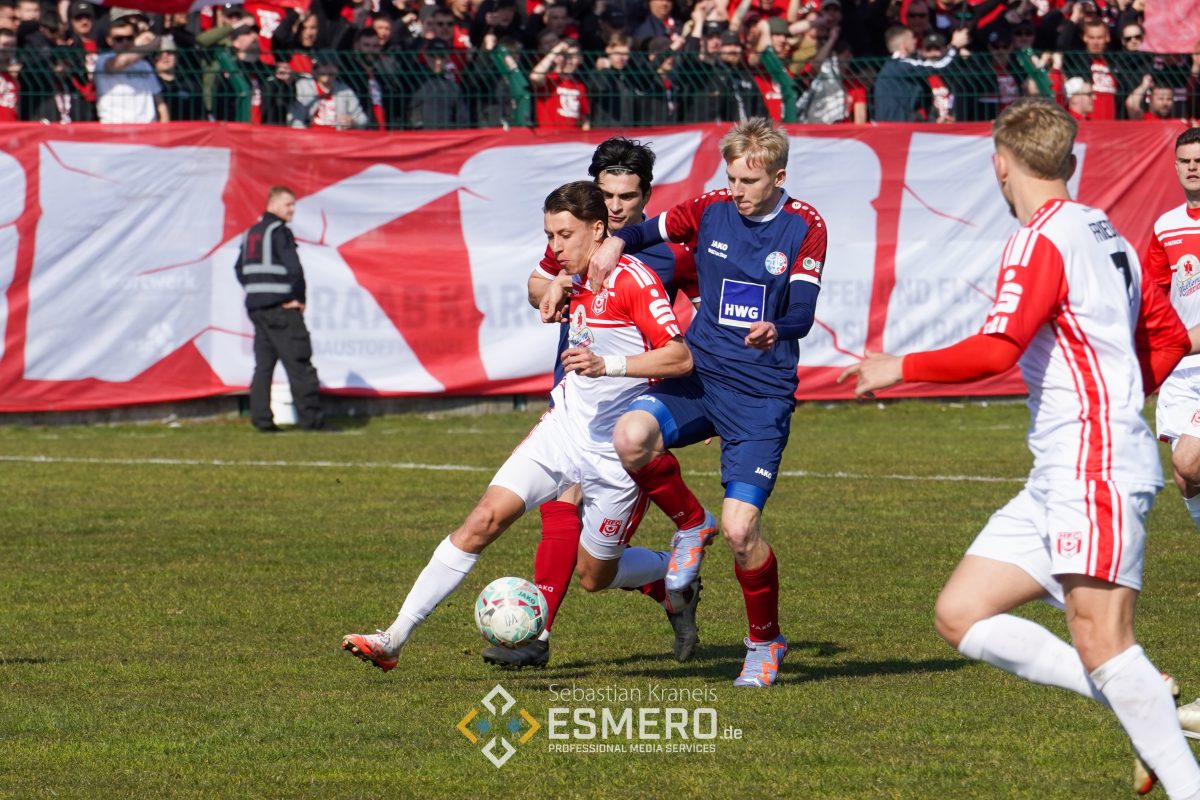 Hartmann (30.) und Friedrich (33.) waren für den HFC erfolgreich. VfL-Kapitän Francesco Lubsch musste nach 26 Minuten wegen einer Tätlichkeit vom Platz.