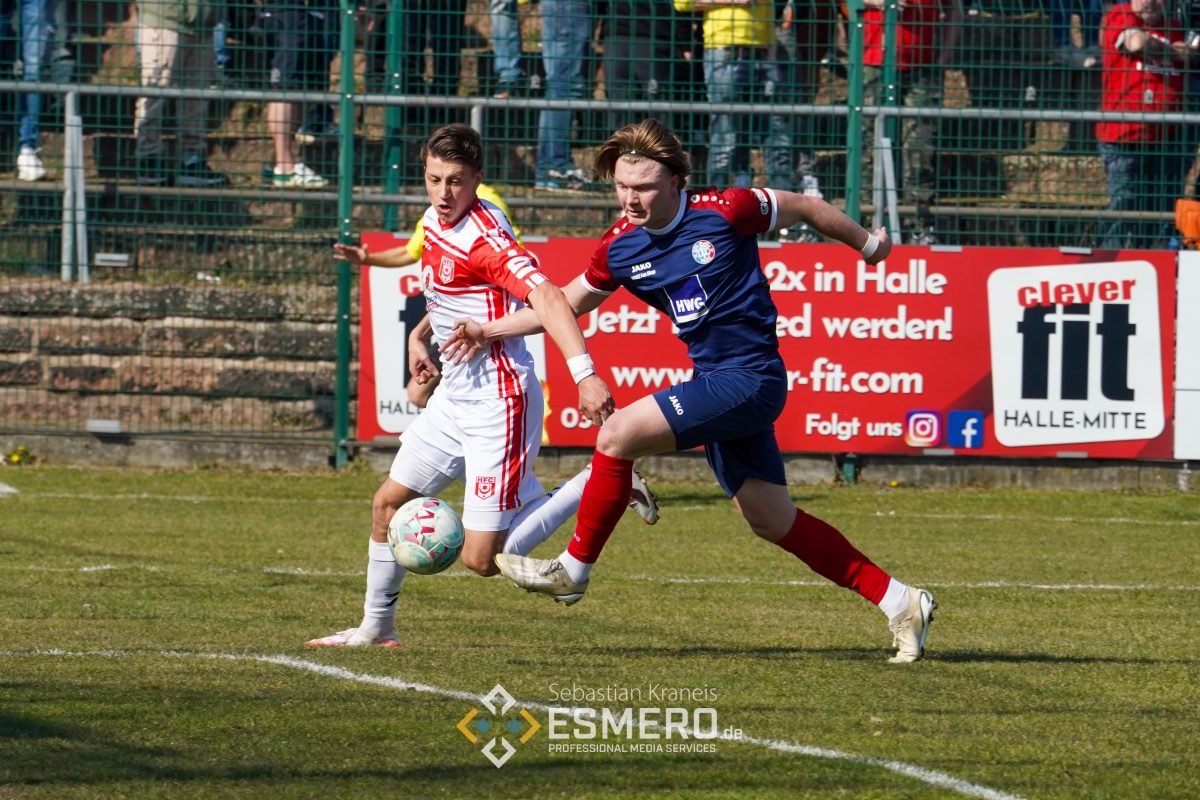 Der Hallesche FC hat am Samstagnachmittag das Stadtderby im Halbfinale des Fußball-Landespokals gegen den VfL 96 mit 2:0 gewonnen.