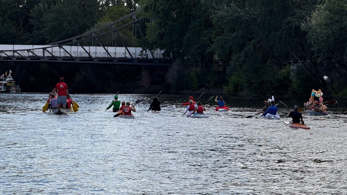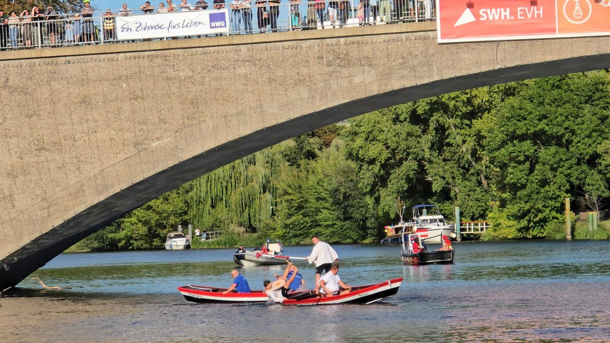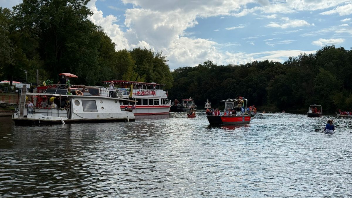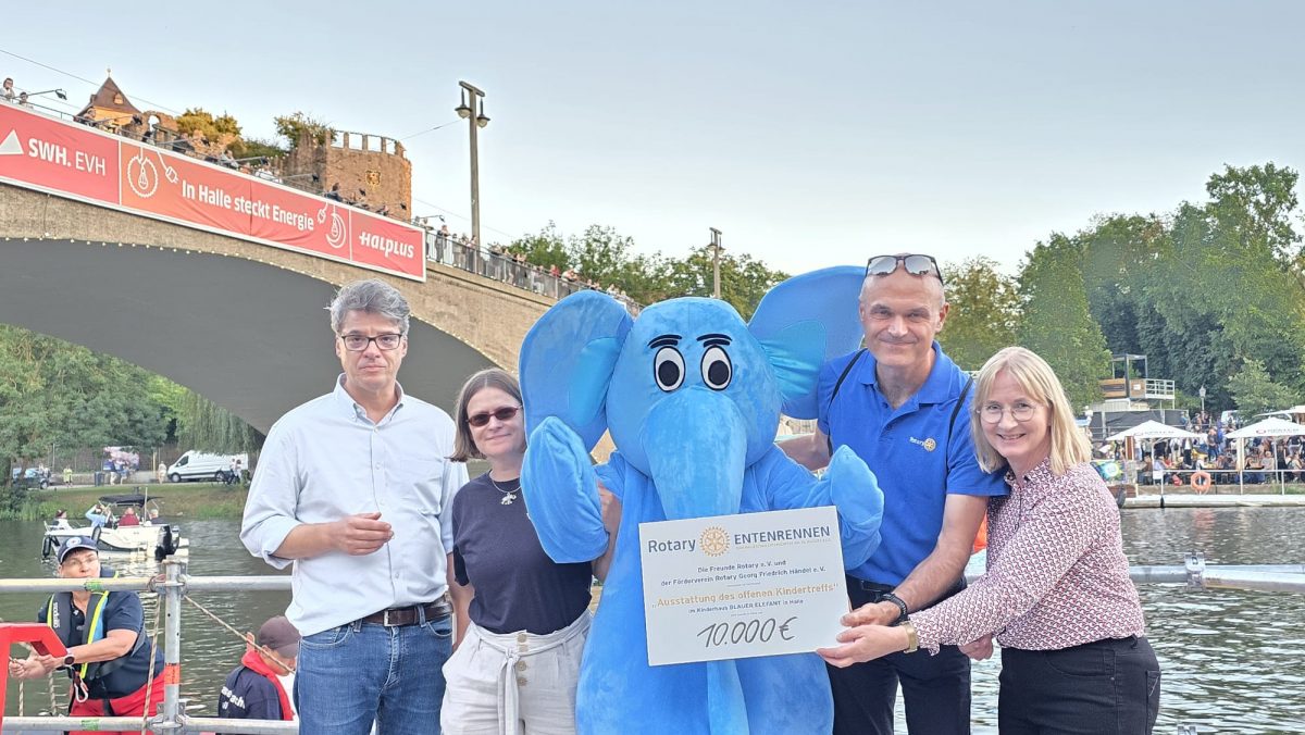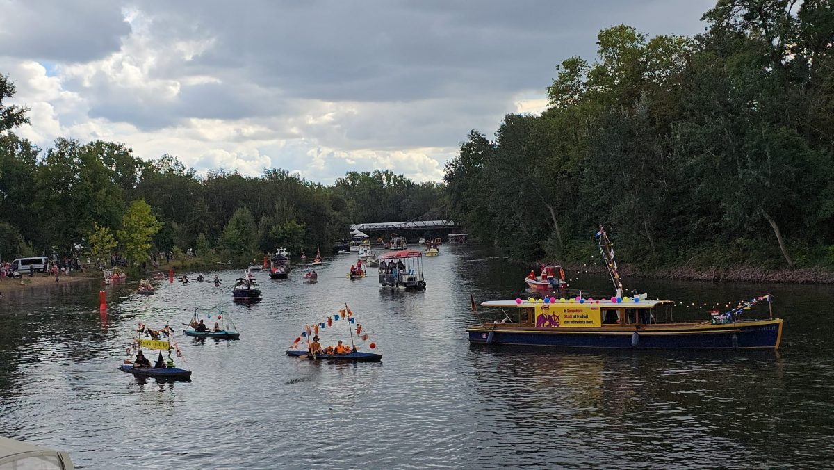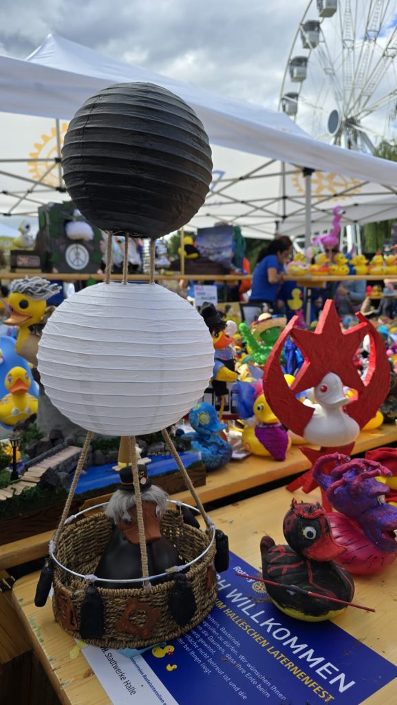 Am Abend wurde es dann schwimmend spannend: 3.000 quietschgelbe Plastikenten stürzten sich bei leichtem Strom in die Saale – beim traditionellen Rotary-Entenrennen. Nicht alle kamen schnell voran, aber für Stimmung sorgte das bunte Gewusel allemal.